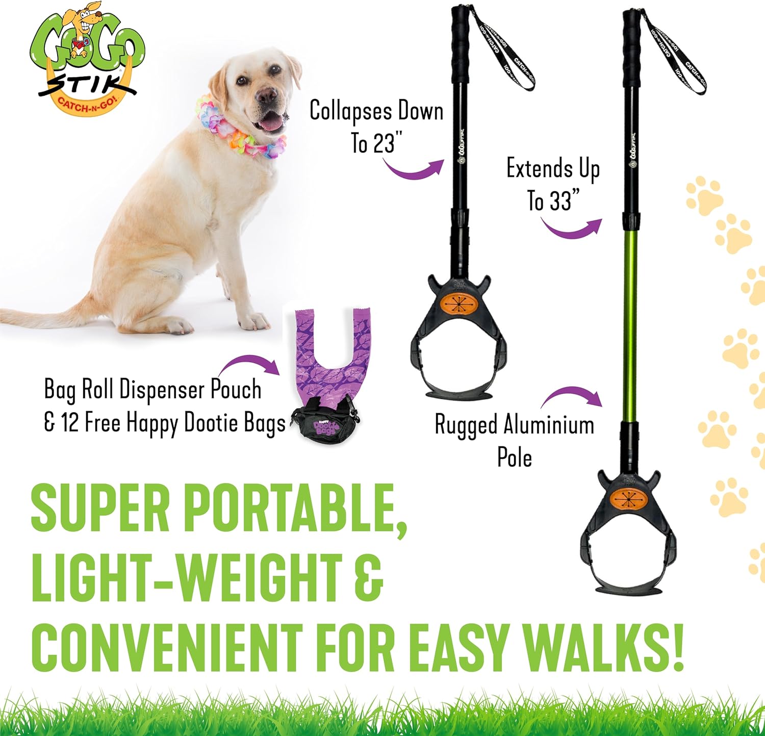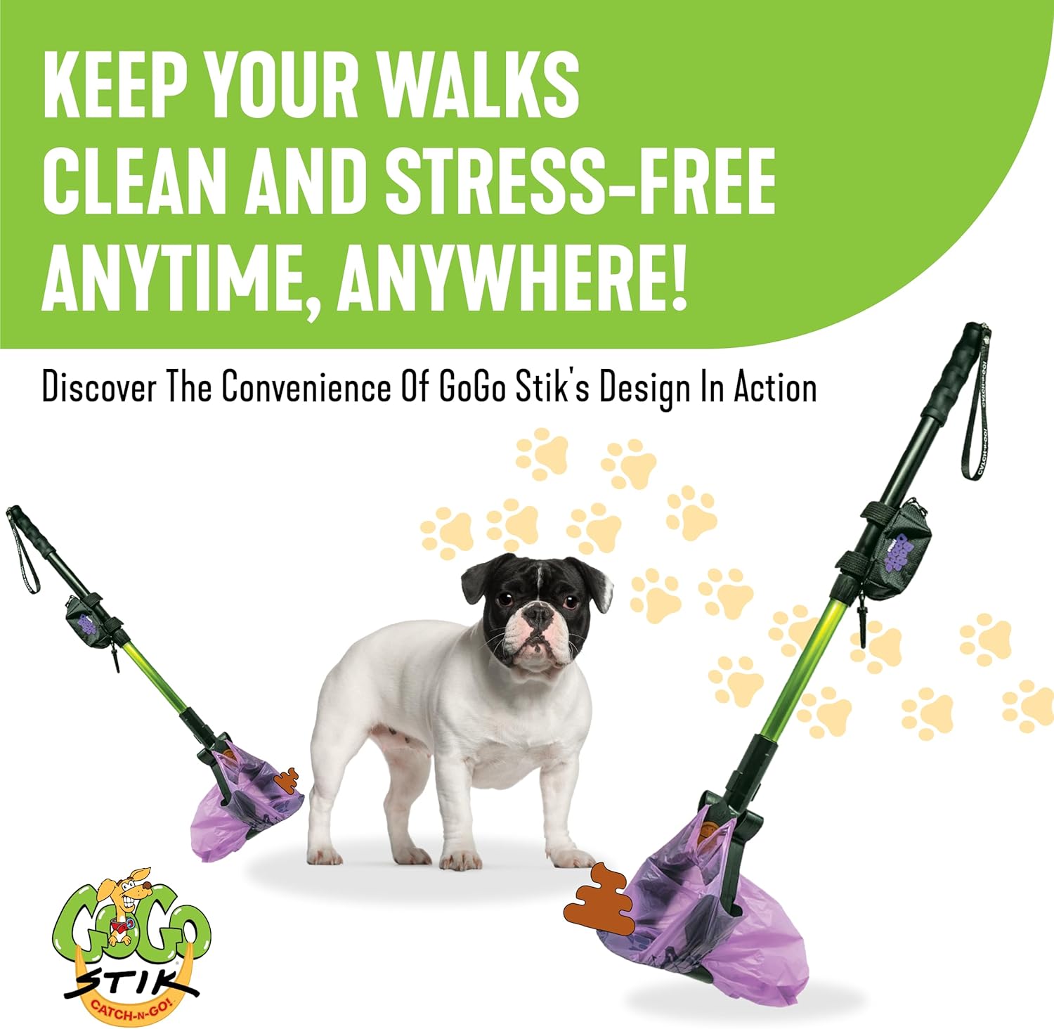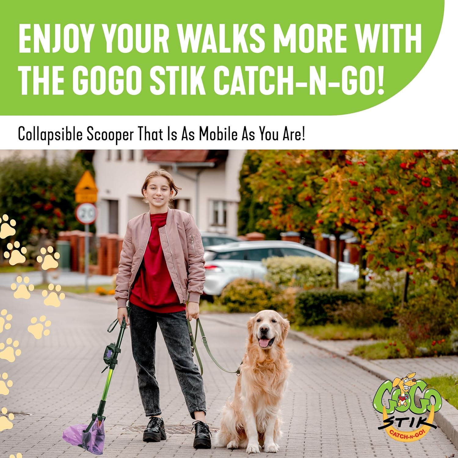 - GoGo Stik Catch-N-Go! Best Poo Catcher with Bag - Scooper with full 5 Year Warranty. Patented Innovative Design Keeps Your Hands and Scooper Clean and Sanitary Because Only the Bag Touches Your Dog's or Pet’s Waste. Clean, Quick, and Convenient!
