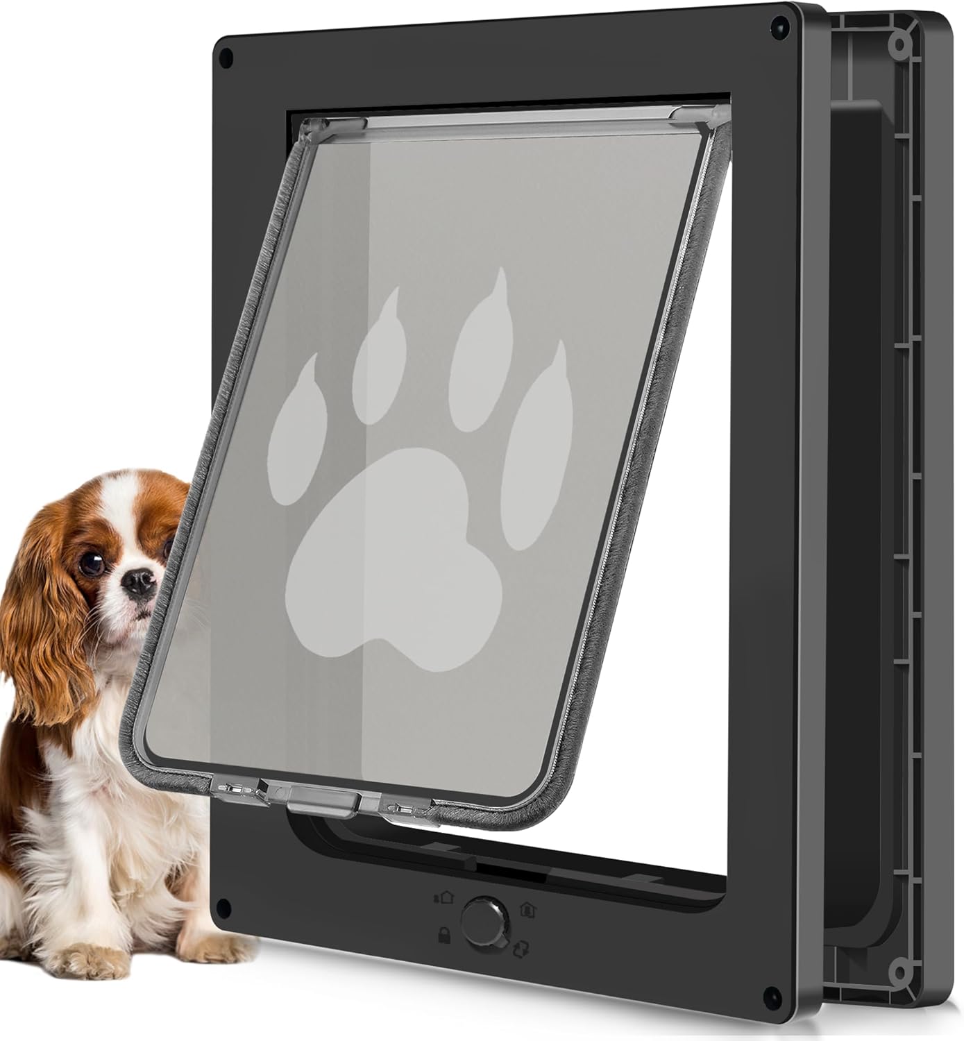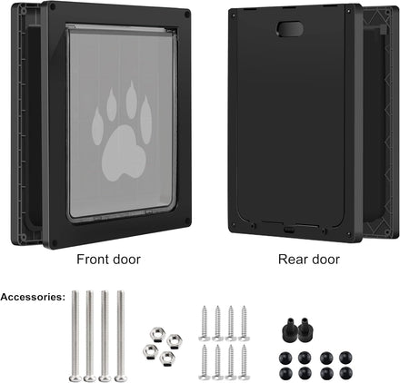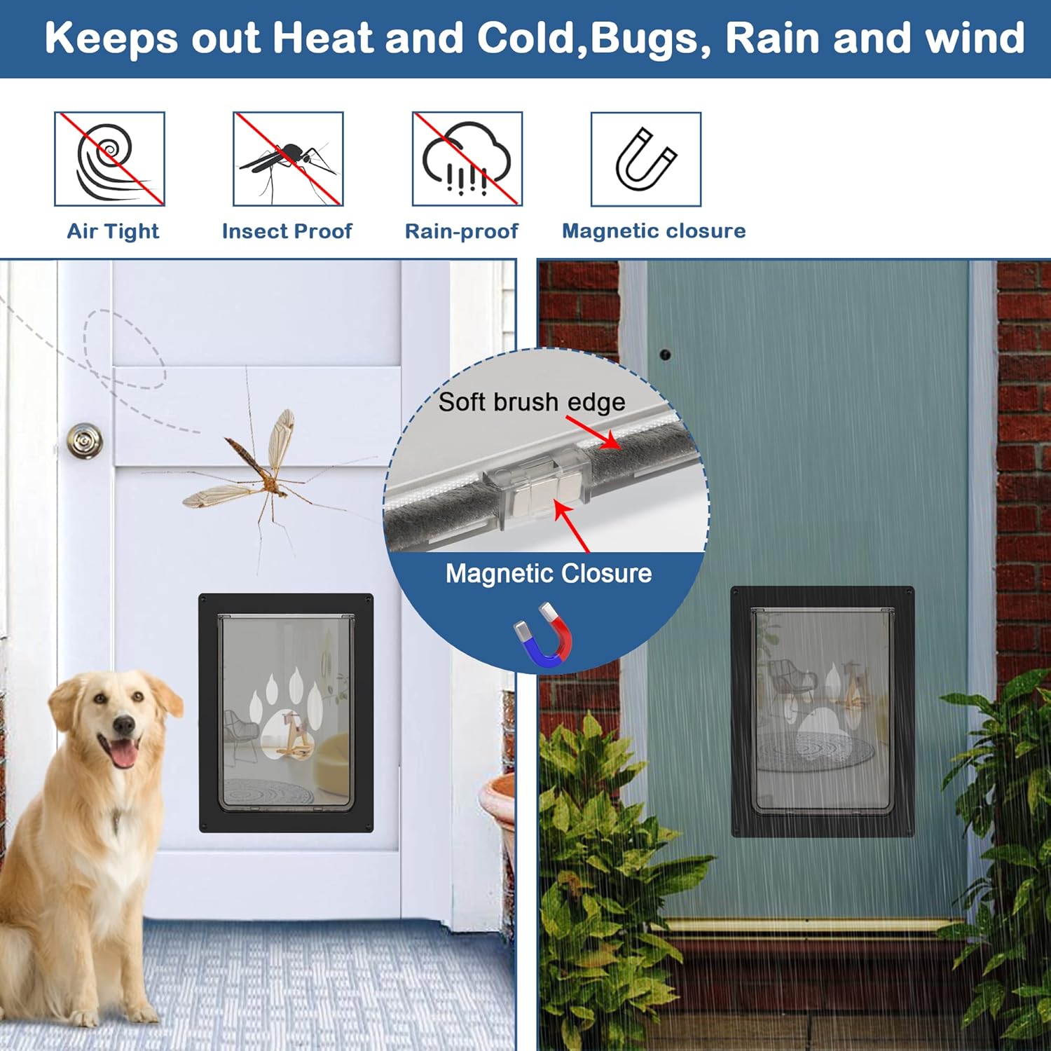 - UNIQUE DESIGN: This pet door with a removable flap that has windproof and rainproof seals. It also has a magnetic strip at the bottom to keep it securely closed. It can fit large dogs,small dogs, doggie, cats, and other pets up to 100 pounds.