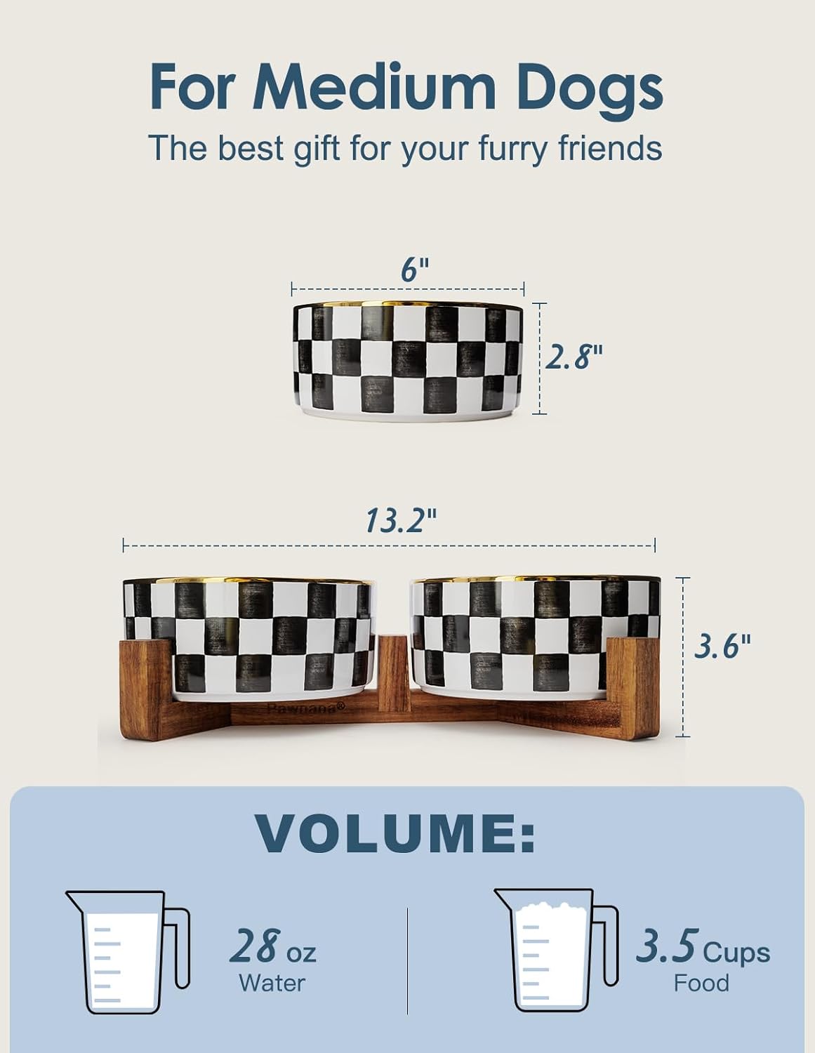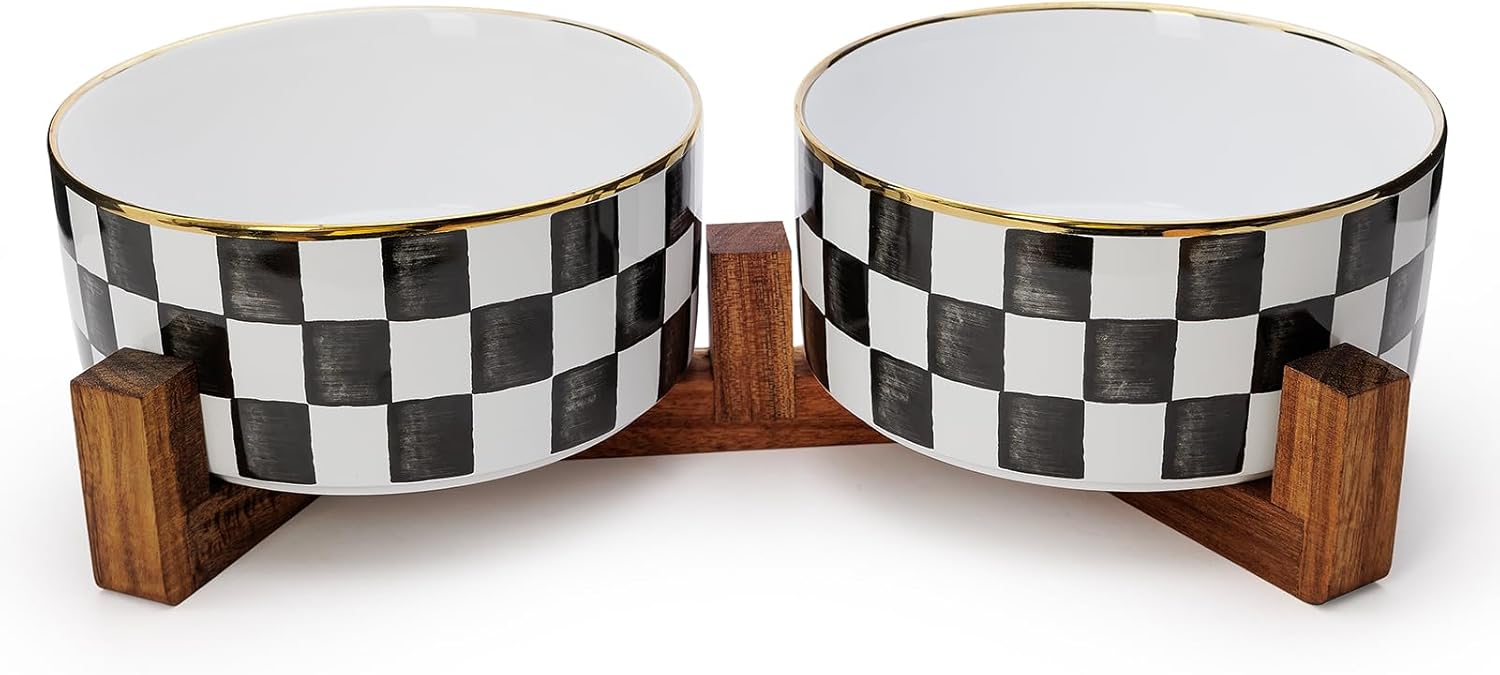 - Stylish Checkerboard Design: Features a striking checkerboard pattern blending timeless style with modern flair. Precision glazing ensures vibrant, fade-resistant hues and luxury contrast. This motif transforms pet bowls into chic home accents, complementing minimalist, modern, or eclectic decor. An ideal Christmas, wedding, or housewarming gift