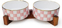 - Elevated Acacia Wood Stand: Crafted with elegant acacia wood, our ceramic dog bowls with stand offer sophisticated style that complements any home aesthetic. The substantial weighted base, integrated with non-skid pads, prevents unwanted sliding to maintain a clean and organized feeding area