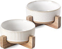 - Farmhouse Style: These dog bowls are crafted in charming neutrals and earthy tones, featuring lovely lines on the sides.With a light brown wood stand , they create a clean, natural farmhouse feeling matches the style of the home while adding a touch of textural interest to space