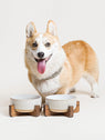 - Thoughtful Design: Wide mouth and suitable height allow your dogs and cats to get food easily and reduce neck burden. Non-slip pads and a wider wood stand give the dog bowl greater stability and not easy to be overturned, keeps your dog bowl set from sliding around and keep tidy at the feeding room