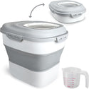 - 【Extra Large Capacity】The large rice storage containers is designed to be collapsible that can be adjusted to fit the size to store your food. When unfolded, it can store about 30lb of dog food or 50lb of rice. When folded, it can store about 13lb of dog food or 20lb of rice. Depending on the type of food, the capacity is different