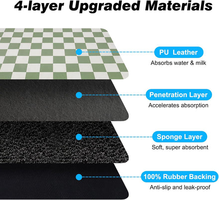Strong Absorbency: CooRug dog feeding mat is highly absorbent and can quickly absorb spilled water and milk without leaving any traces. Keep your pet's eating area clean.