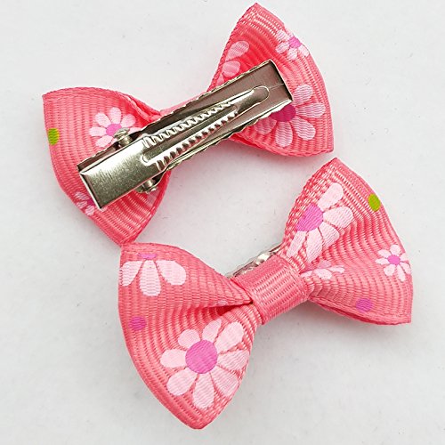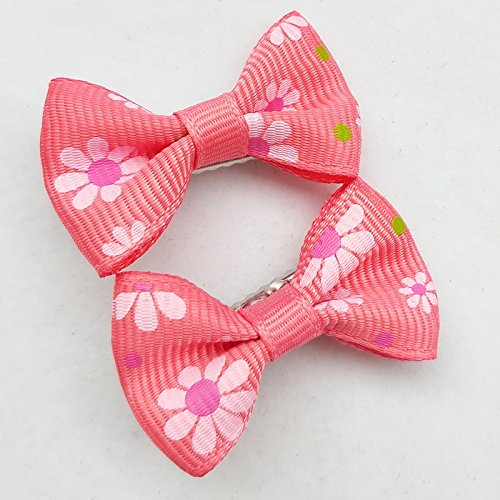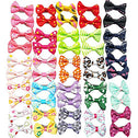 Chenkou Craft 50pcs(25pairs) Dog Cat Hair Bows with Clips Pet Grooming Bows Products Mix Colors Varies Patterns Pet Hair Bows Dog 1 5/8" x 1" (40x25mm) (Clip Style)