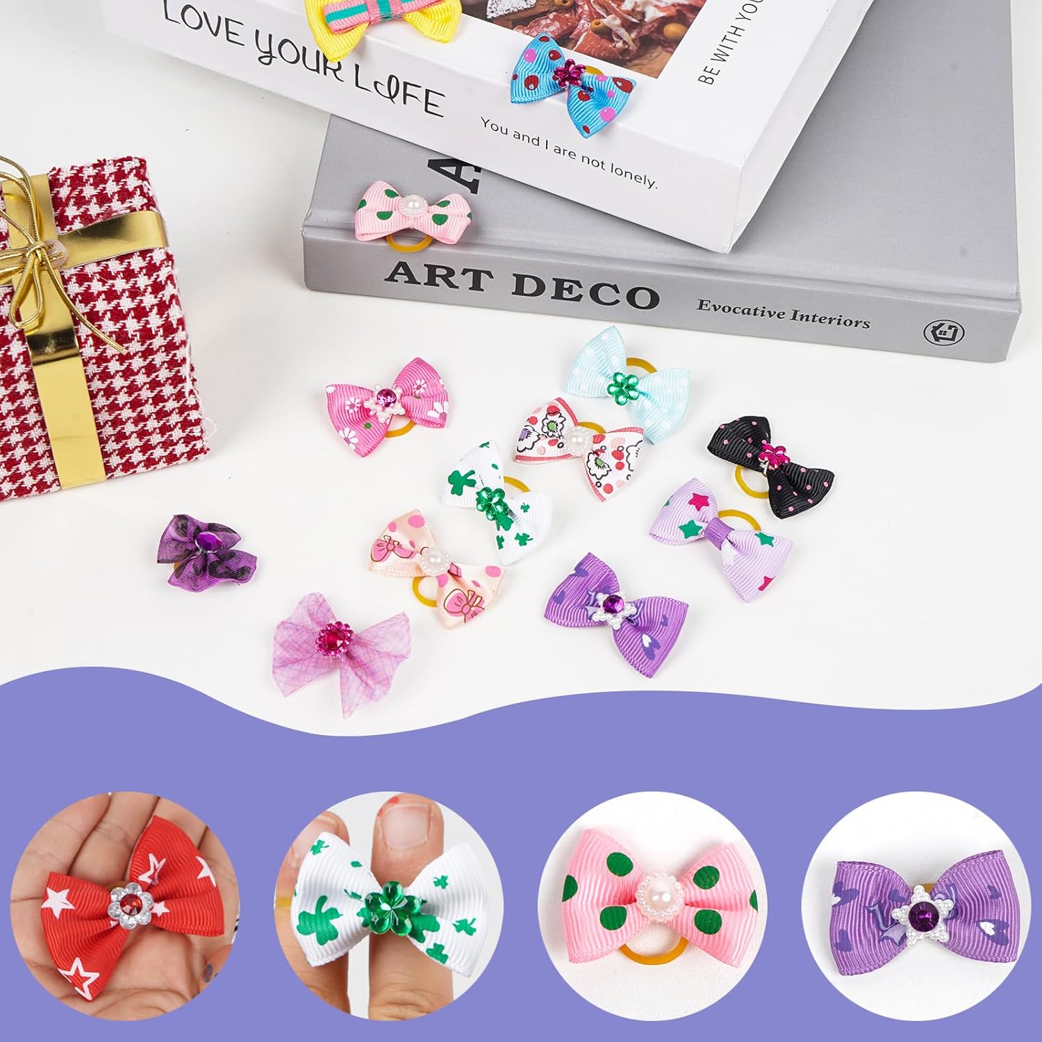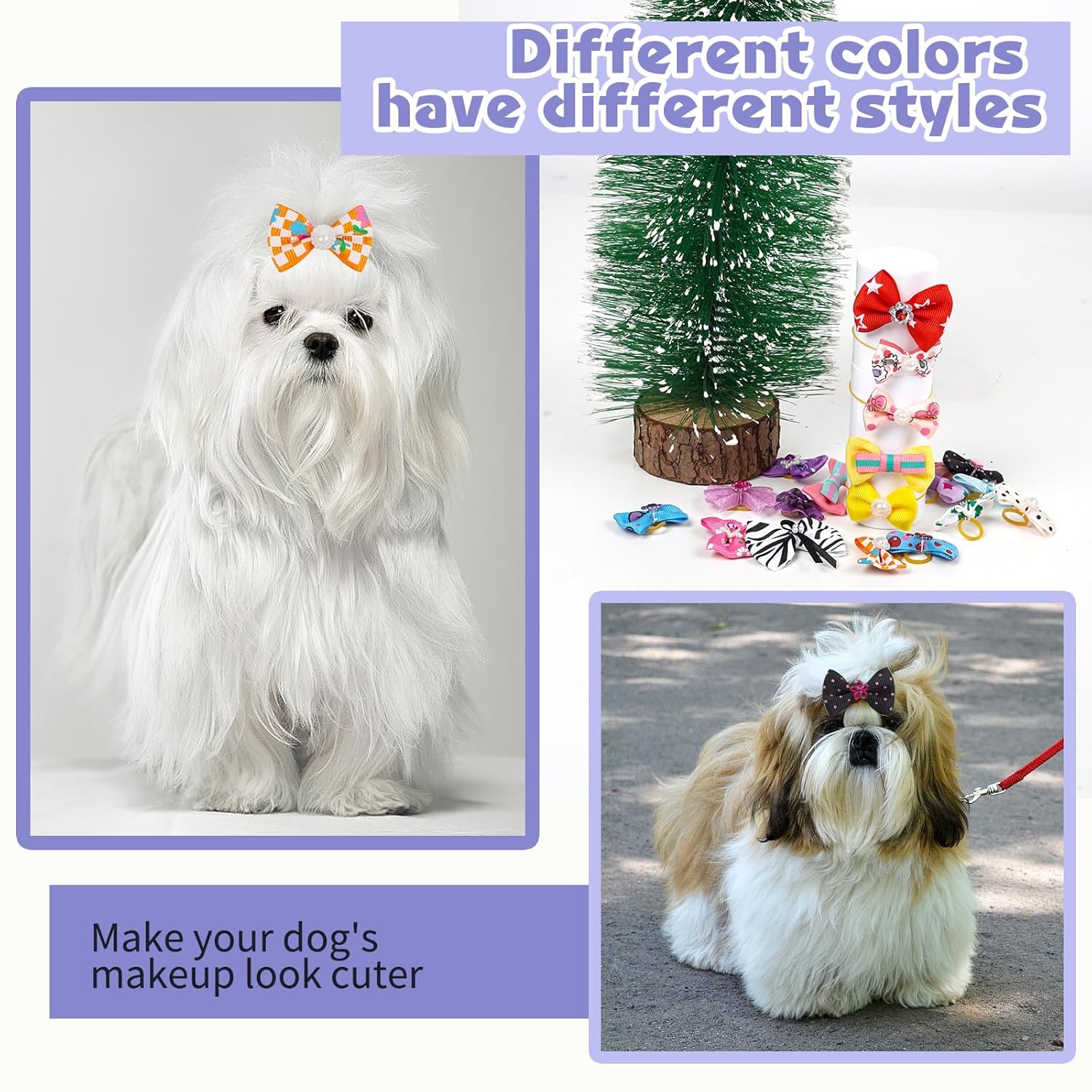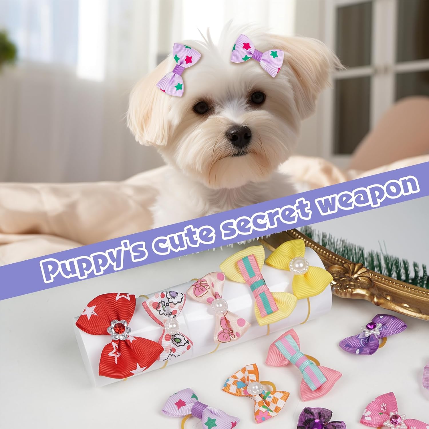 - Size:MIX backside with elastic rubber band, Cute hair clips for small and Middle dogs