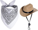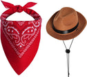 - STYLISH RETRO LOOK:The pet cowboy hat is made of polyester, which are durable, comfortable for wearing.red bandanas is made of cotton fabric which is soft and skin friendly, the retro printing style makes pets looks cool, stand out from the crowd.