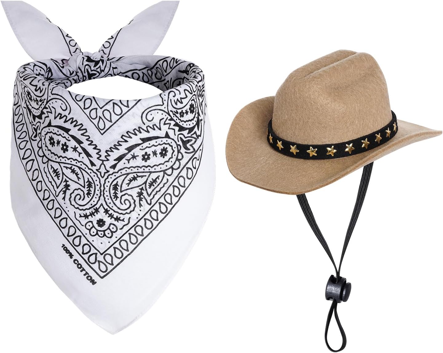 PACKAGE INCLUDED:you will receive brown cowboy hat and red bandanna, stylish and retro design turns your pet into a cute, handsome cowboy in no time.