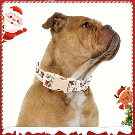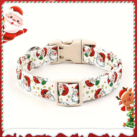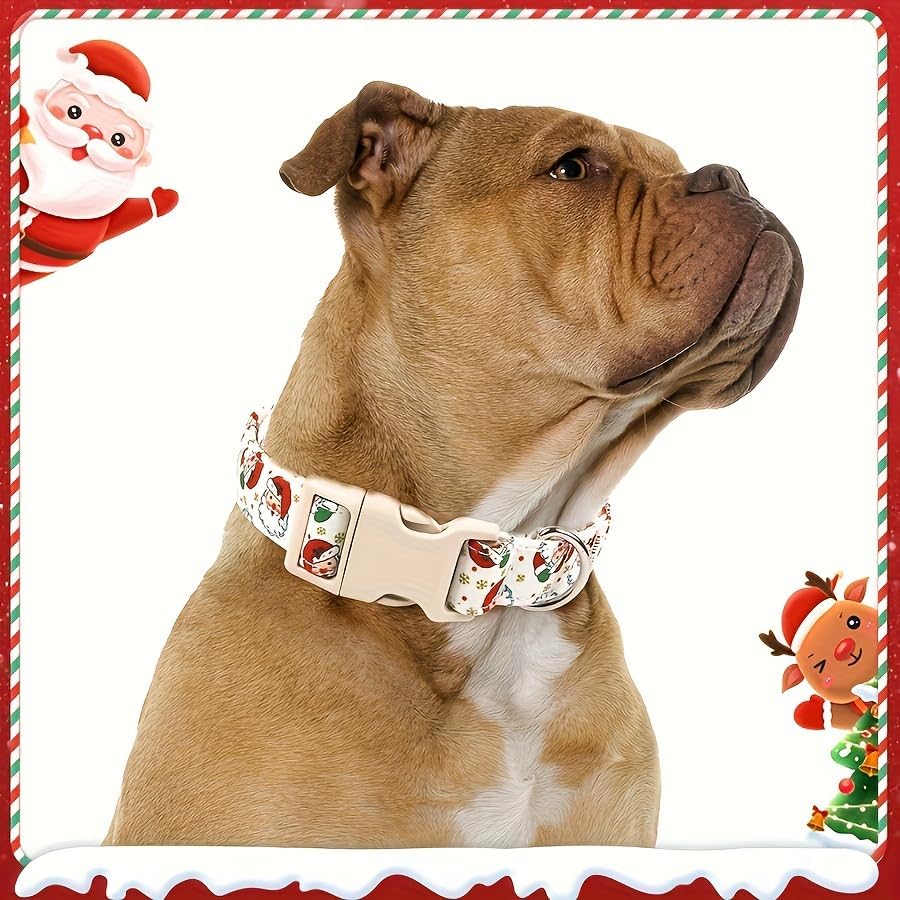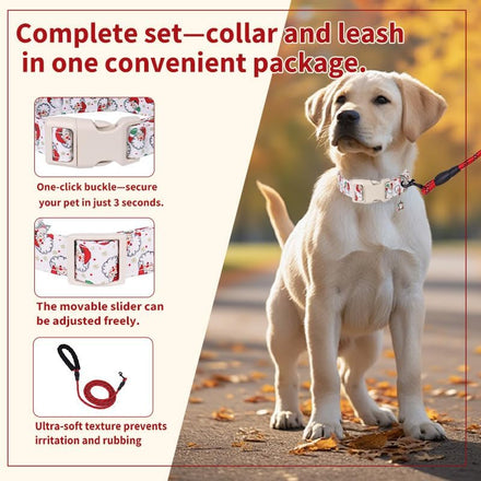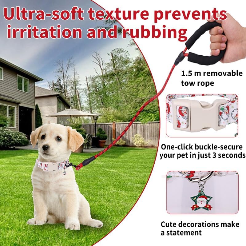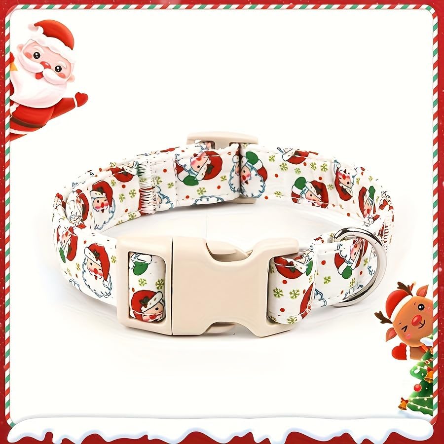Christmas Dog Collar and Leash Set, Adjustable Holiday Pet Collar with Santa Claus & Reindeer Pattern, Durable Polyester, Comfortable and Secure Pet Accessories for Small Medium Large Dogs