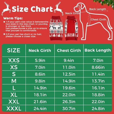 8 Sizes Available Dog Sweaters: Our dog Christmas costume sweaters is available in 8 sizes(XXS, XS,S,M,L,XL,XXL,3XL). Suit for most cats and small medium dogs, such as Chihuahua, Bulldogs, Dachshund and Beagles. Please Measure your dog/cat size before purchasing and check our size chart carefully to choose the proper size of the knitted sweater for your dog