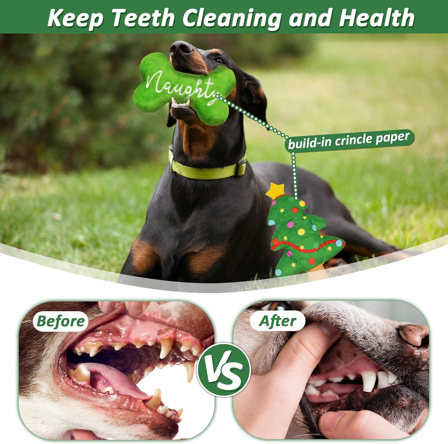 - 【Christmas Dog Toys Set】This dog toys pack include Santa Claus, Gingerbread Man, Christmas tree and green bone. The best Christmas gift for your fur friends