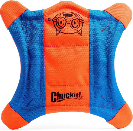 Unleash active playtime with the Chuckit! Flying Squirrel Fetch Dog Toy. Designed for action, this fetching delight features an aerodynamic design for smooth glides that ignite tracking and chasing instincts. Whether in your yard or at the park, the excitement knows no bounds. Its buoyant design turns fetch into aquatic adventures, making it a versatile companion for interactive fun. Crafted from durable polyester canvas, this lightweight fetch toy combines vibrant colors with gentle toughness. It's soft on your dog's gums and teeth, but no toy is truly indestructible, and it's not intended as a chew toy or for aggressive chewers. Always supervise your pet when playing.