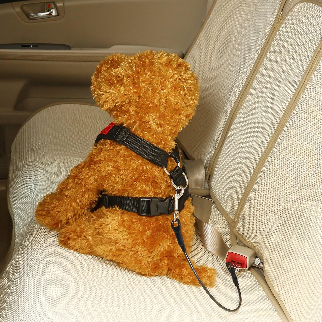 Cinturón de seguridad en el automóvil para tu amigo peludo, evita que tu mascota te distraiga mientras conduces, te mantiene a ti y a tu mascota seguros durante los viajes por carretera. Manera de conexión múltiple, puede utilizar un broche de toro para contactar la barra de cierre en tu automóvil. Para la seguridad de tu mascota, no coloques el cinturón de seguridad al collar de tu mascota directamente. Se recomienda usar con un arnés para perros.