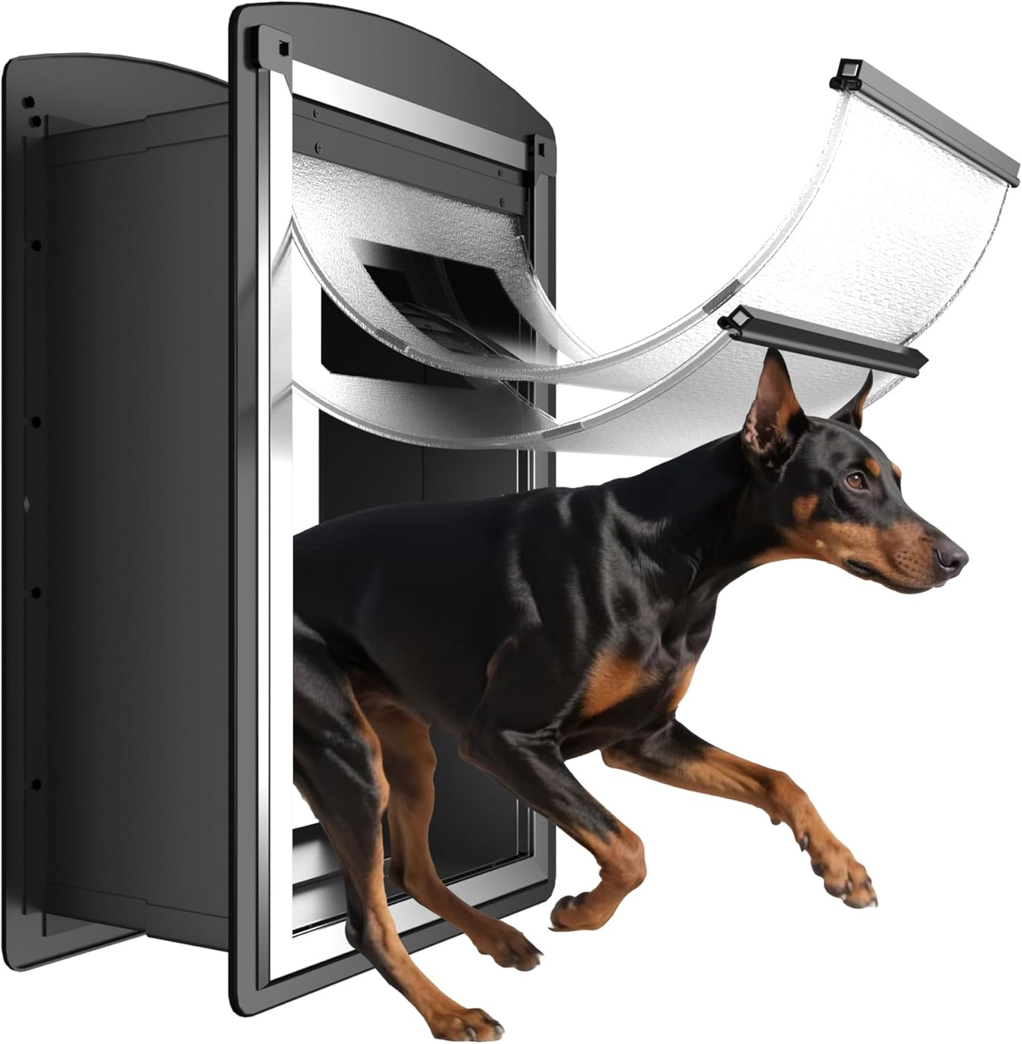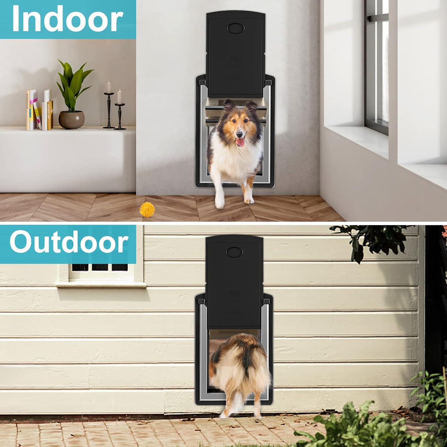 - 【Duradero y resistente】Este marco de puerta para mascotas está hecho de marco de metal y túnel telescópico que lo hacen fuerte, doble solapa y paneles de bloqueo deslizantes, puede ser resistente a la intemperie, ayuda a proteger contra el clima extremo y reducir corrientes de aire externas.
