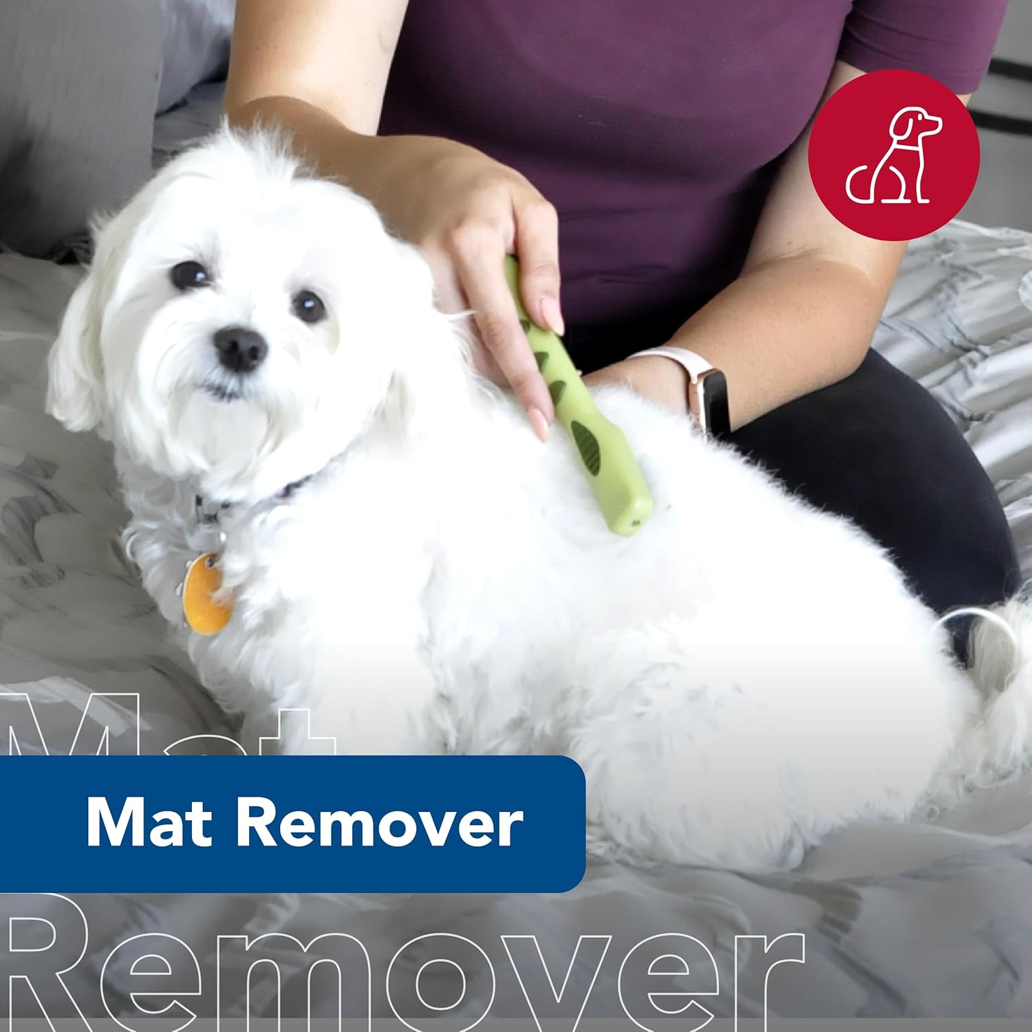 - Dog Grooming Brush: This dog dematting brush detangles fur, removes mats and smooths the coat