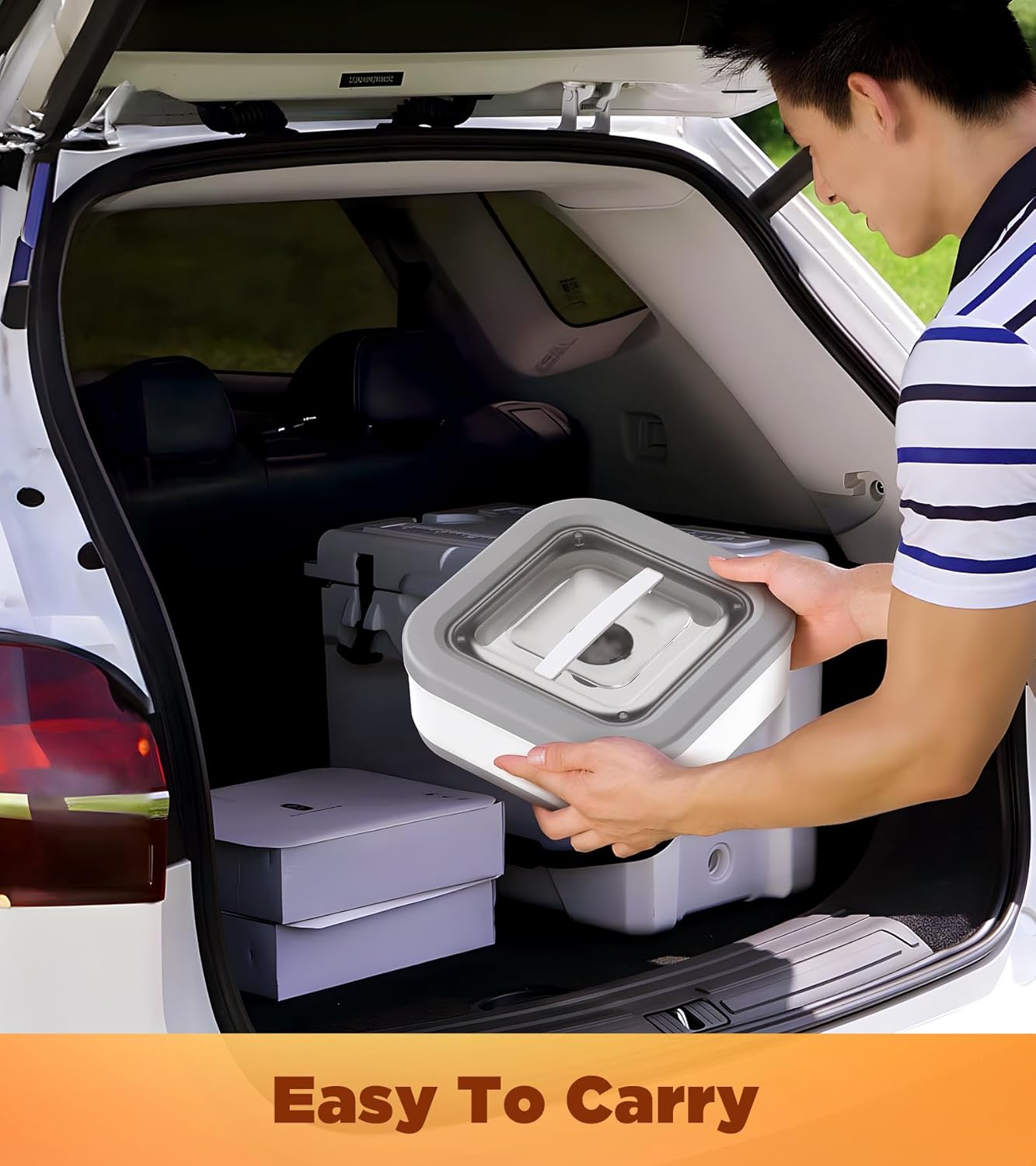 • 𝐅𝐨𝐥𝐝𝐚𝐛𝐥𝐞 𝐃𝐞𝐬𝐢𝐠𝐧 - Our dog food container is designed to be easily foldable, allowing you to carry, move, or store it with utmost convenience. Compact size of 11.2"*11.2"*3.9" when folded, and expands to 11.2"*11.2"*9.8" when in use, providing a maximum capacity of 14 lbs.