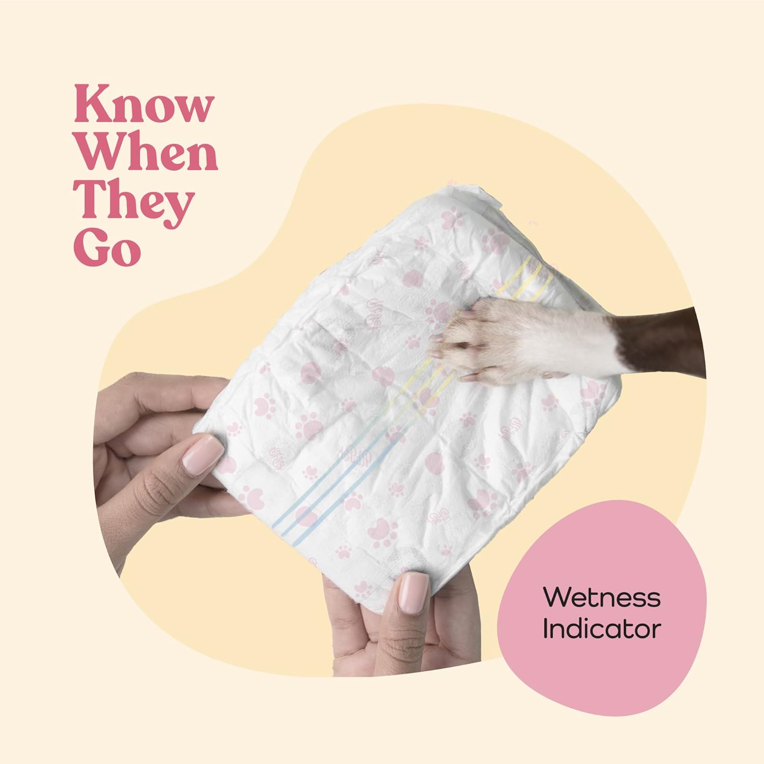 - WETNESS INDICATION - The yellow strip running through the center of the puppy diapers will turn blue when it’s time to change the diaper so you can stop guessing and avoid leakage.