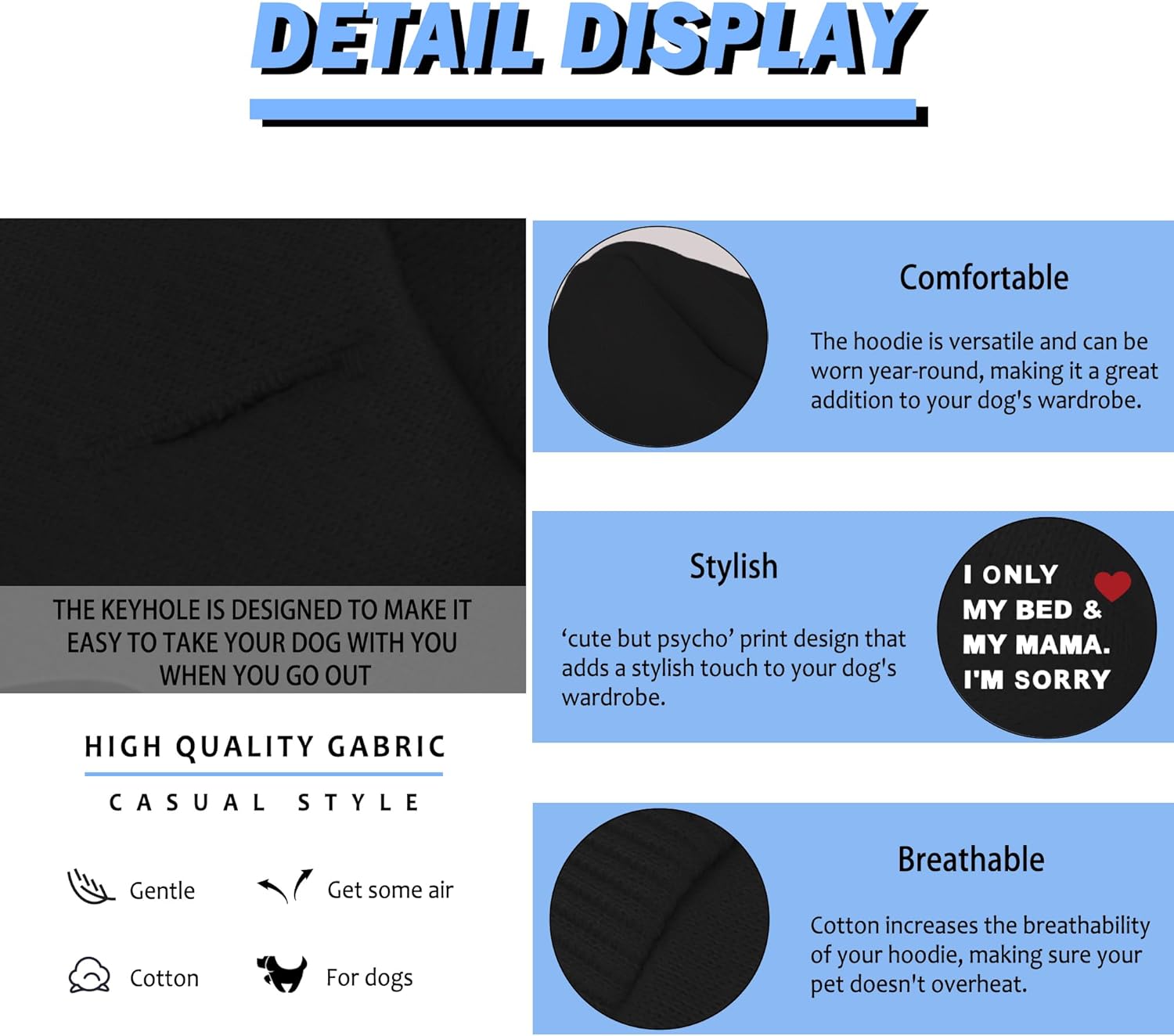 - Lasting Quality: The blend's durability ensures the hoodie maintains its shape and appearance after repeated wear and wash, ensuring a reliable and long-lasting clothing option for your pet.