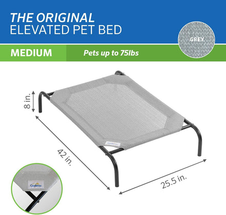 Coolaroo Original Elevated Dog Bed is a breathable, joint-friendly solution for keeping pets cool and supported. Its suspended design improves airflow and reduces pressure points, while the HDPE fabric is moisture-resistant, easy to clean, and free from harmful toxins. Suitable for indoor or outdoor use, this lightweight bed is perfect for everyday comfort across all seasons and surfaces. Just rinse with water or wipe to keep it fresh,