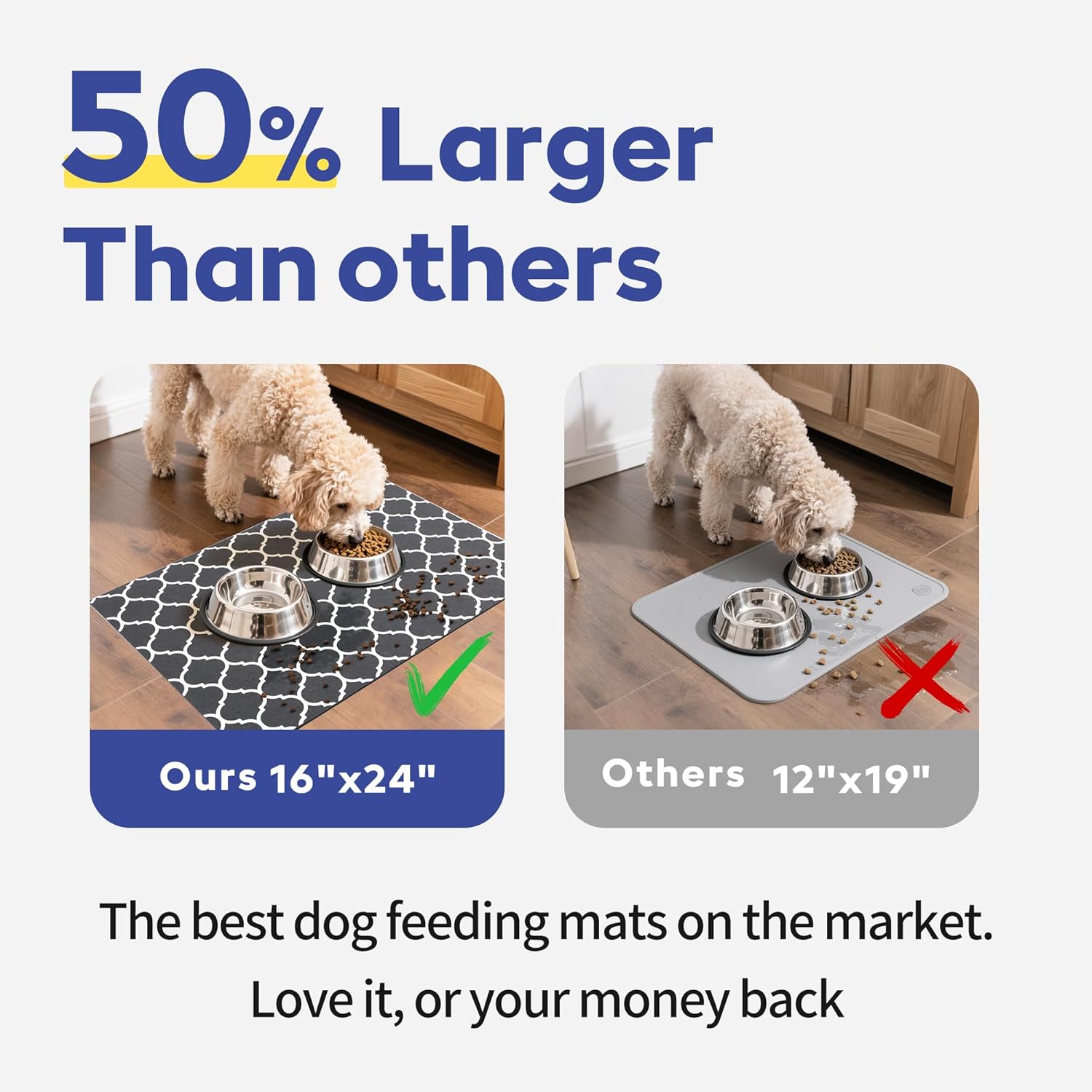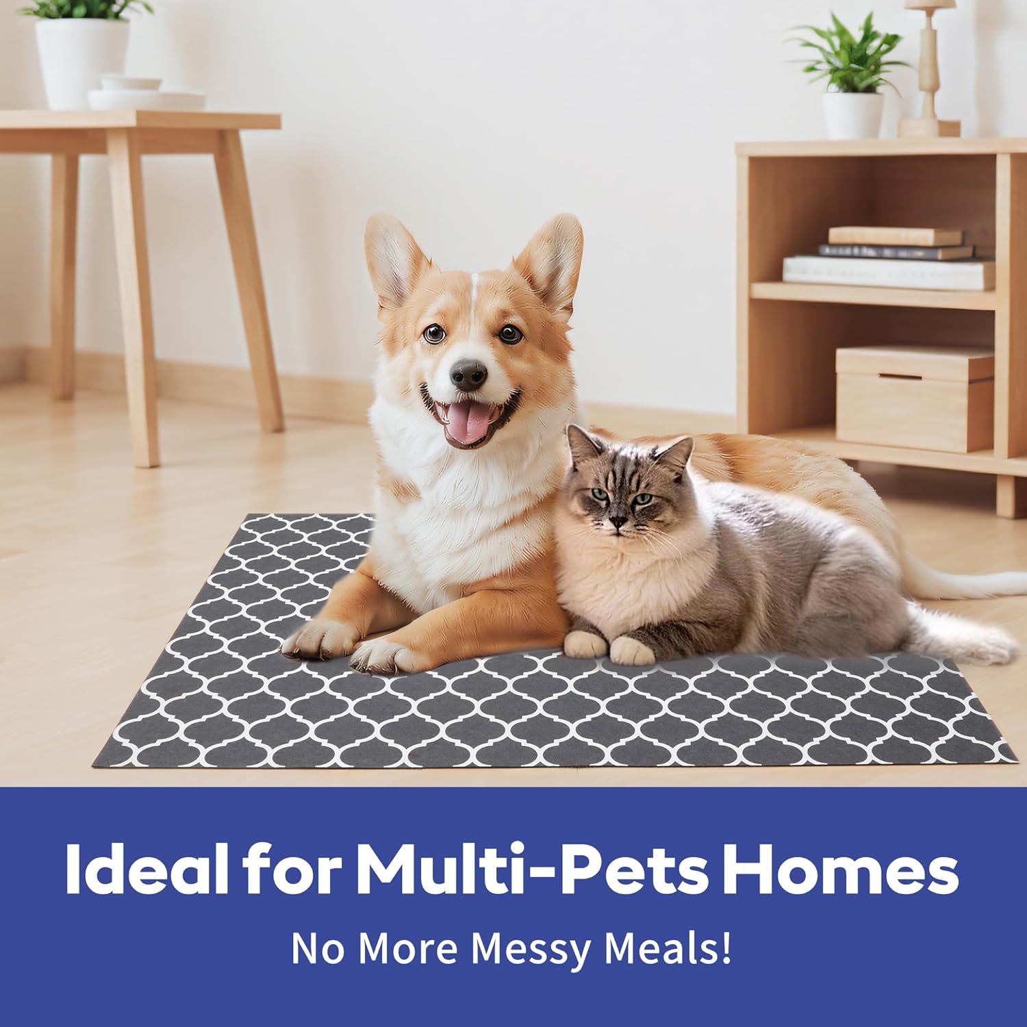 • Ultra-Absorbent and Non-Slip: Unlike similar products on the market, this pet food mat features a highly absorbent texture with water locking bottom and non-slip back, ensuring the food and water bowls stay put and minimizing accidental spillage.