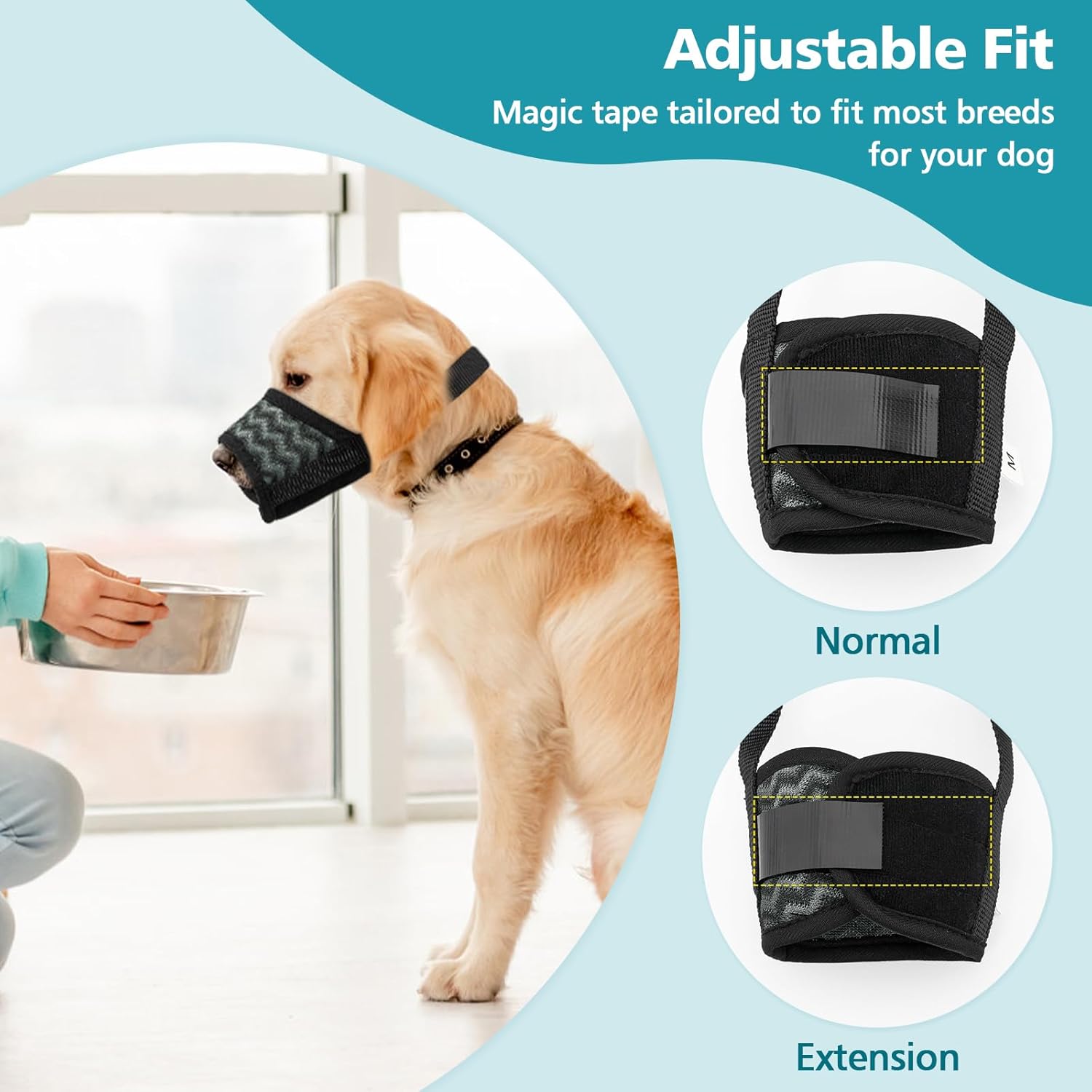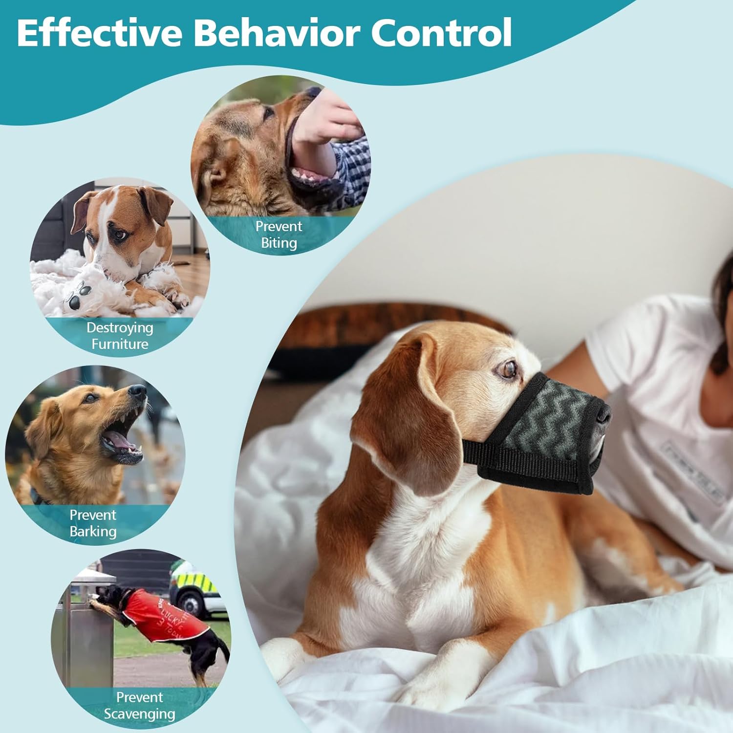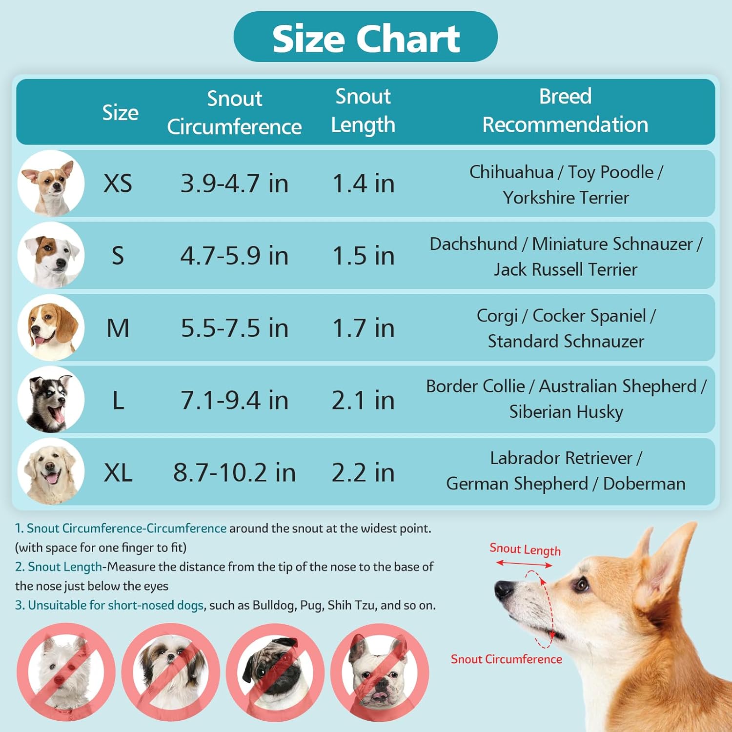 - Barking and Behavior Control: The newly designed soft dog muzzle is perfect for preventing unwanted actions such as biting, chewing, and excessive barking. It's an essential tool for vet trips, walks, grooming, travel, and all your dog's daily adventures. For the best fit, measure your dog's snout circumference and length before purchasing. It is not recommended for short-nosed dogs like Pugs or French Bulldogs.