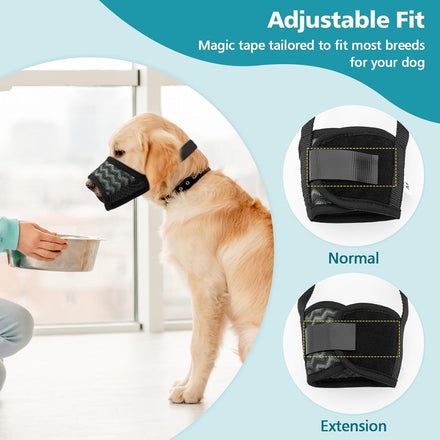 - Magic Tape & Adjustable Straps: This dog muzzle for large dogs features an adjustable slider buckle and dual magic tape design, ensuring a snug and secure fit that won't loosen during use. Its adaptable design accommodates dogs of all sizes—small, medium, or large—making it an excellent option for multi-pet households. Say goodbye to slipping or poorly fitted muzzles.