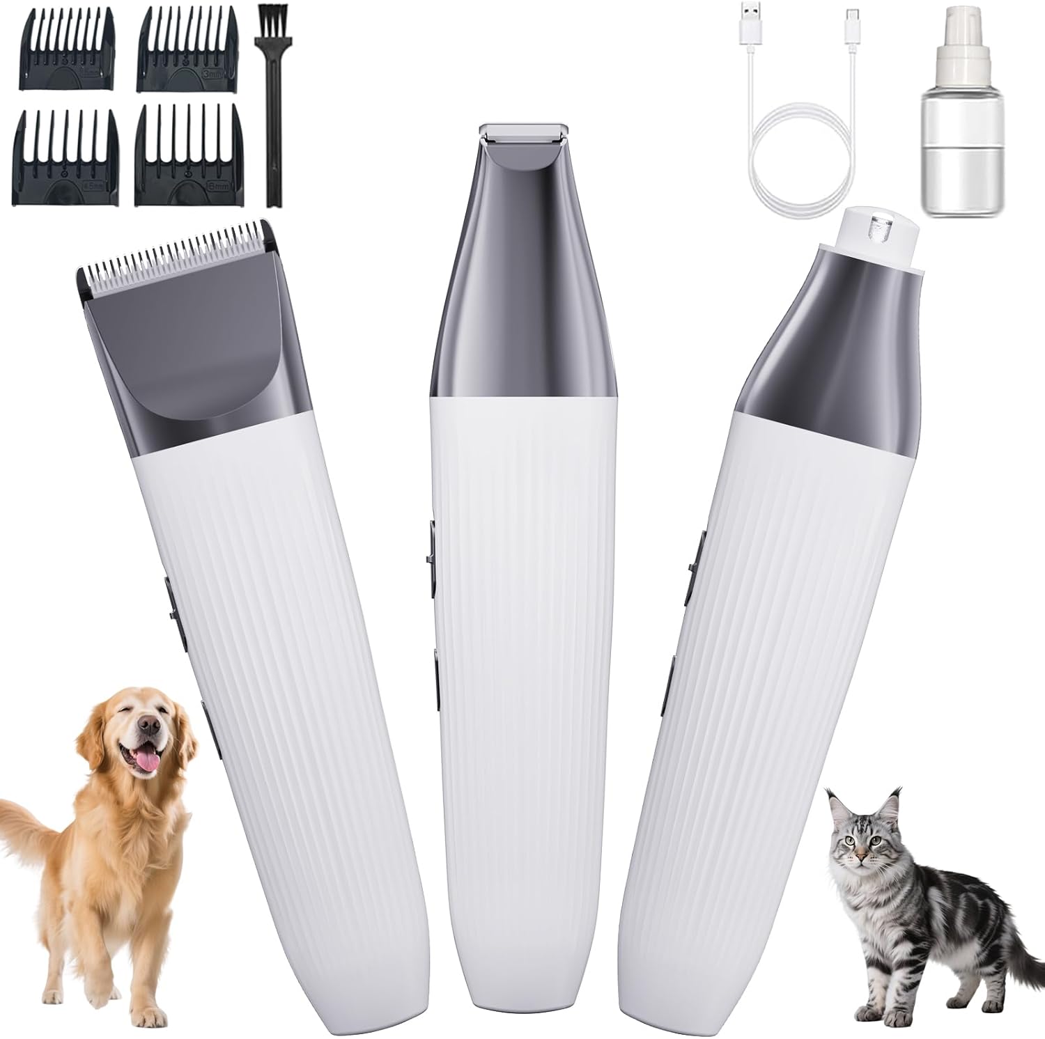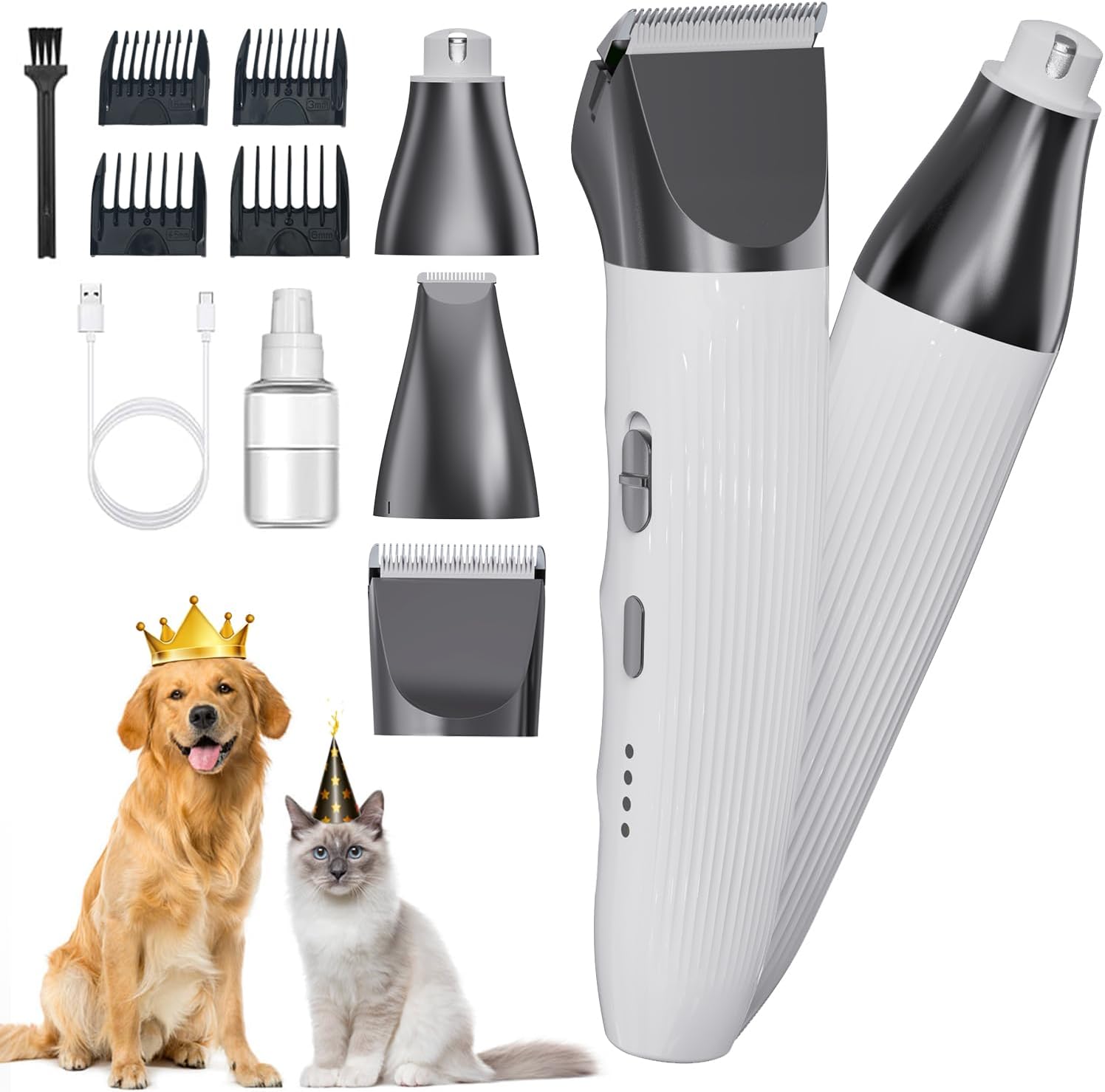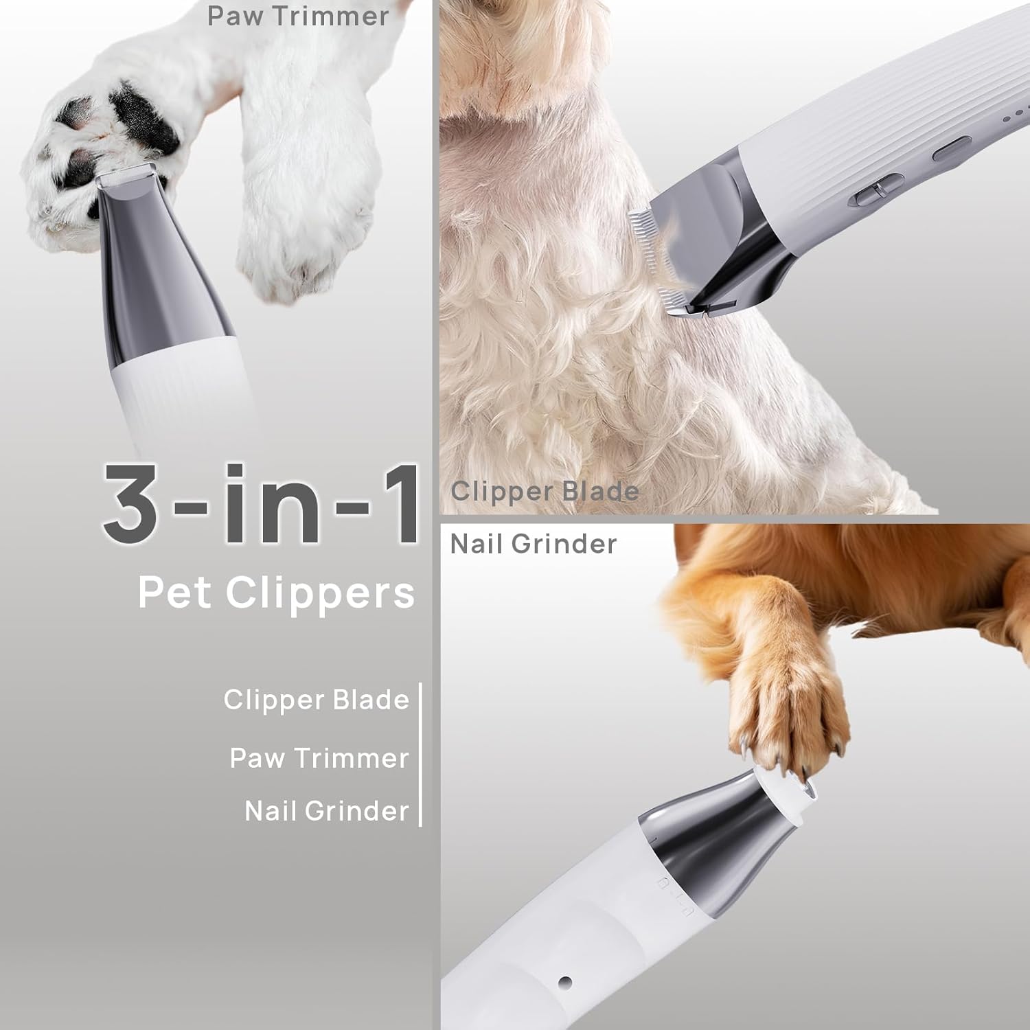 - Sistema profesional 3 en 1, más que una herramienta de eliminación de pelo de mascotas: cabezales intercambiables: cuchilla de corte de tamaño completo + recortadora de precisión + accesorio para el cuidado de uñas. 4 peines guía (1.5/3/4.5/0.236 in): longitudes de corte versátiles para cortadoras de perros pequeños o razas grandes.