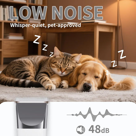 - 【Aseo sin estrés para mascotas ansiosas】 Funcionamiento silencioso (<48 dB): motor avanzado de reducción de ruido y tecnología de amortiguación de sonido crean una experiencia tranquila. Control de vibración: minimiza el estrés de las mascotas, lo que hace que estos sean los cortapelos silenciosos ideales para animales sensibles. Kit de aseo de gatos de pelo largo.