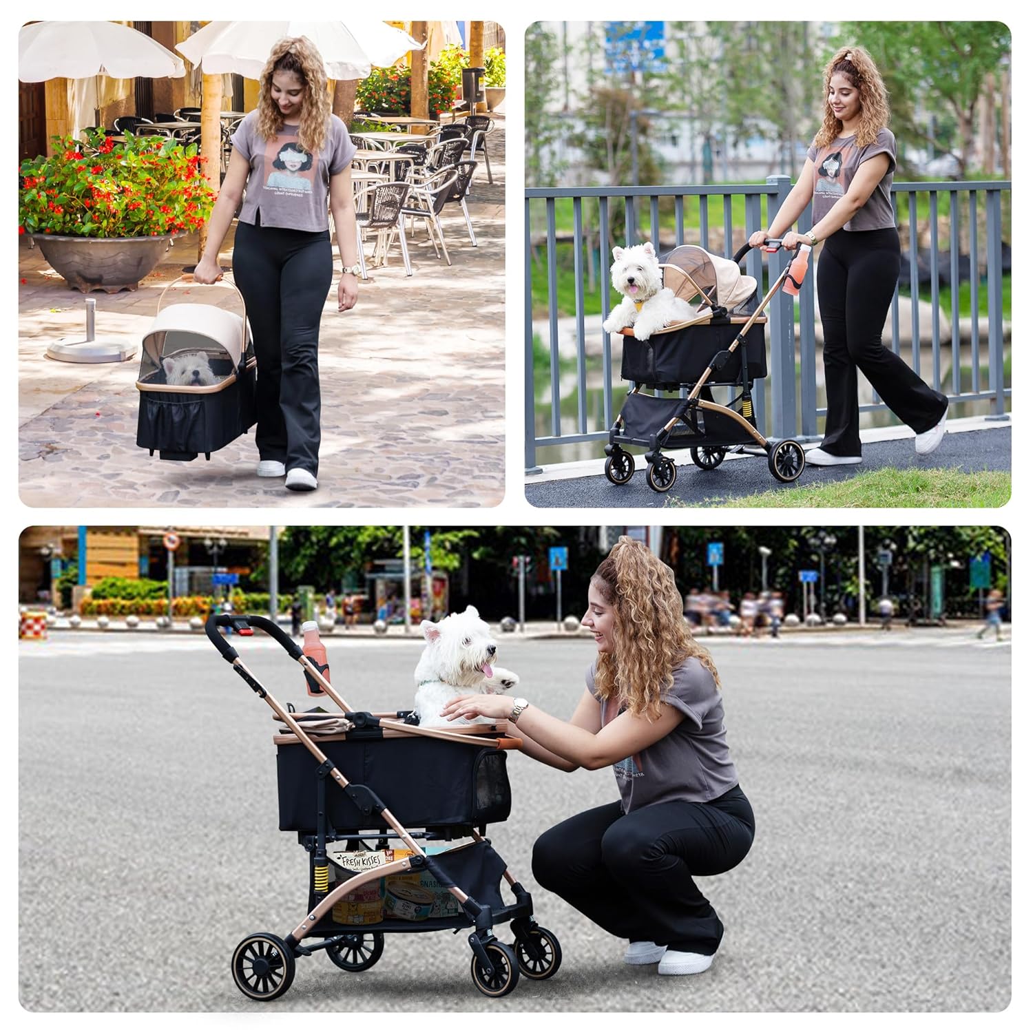 - Luxurious & Safe Design : Featuring premium rose gold linen fabric and a black zippered mesh, this stroller combines style with safety. Two black safety straps ensure your pet is secure, providing both elegance and comfort for your outings
