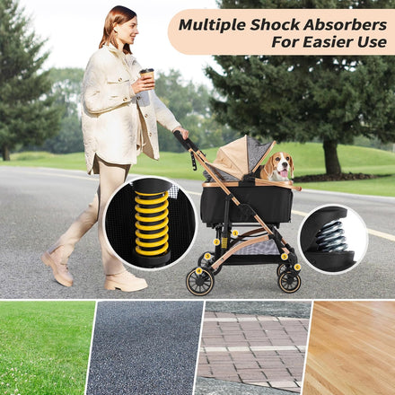 - Enhanced Comfort with Six Shock Absorbers : The six spring shock absorbers provide a smooth and comfortable ride for your pet, absorbing bumps and ensuring a safe, cushioned journey on all terrains. Plus, the rear and front braking systems offer reliable control and security