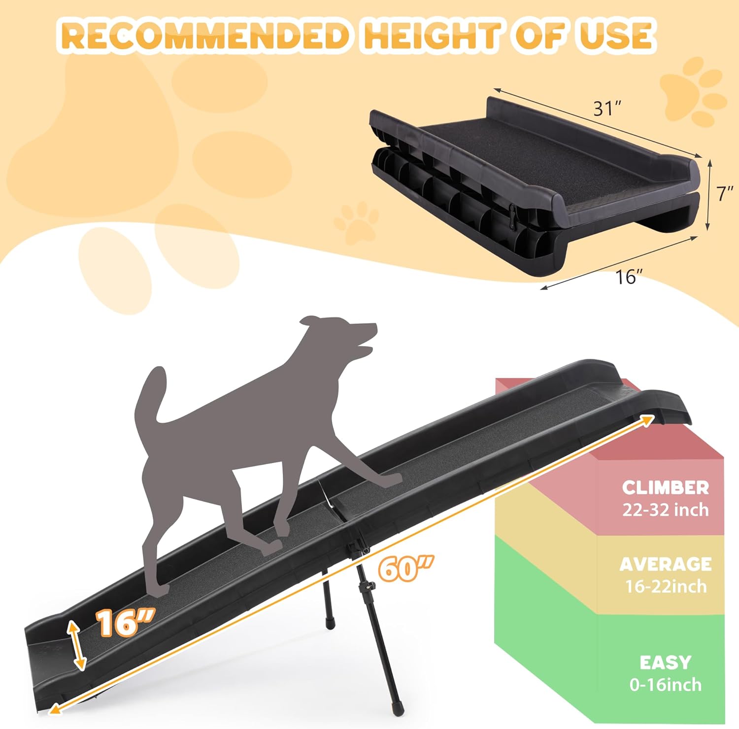 - High Traction:High traction surface and side rails keep your furry friend from slipping or falling when walking on the ramp. Our pet ramp requires no assembly. Just remove the packaging, unfold the ramp, and it's immediately ready to use