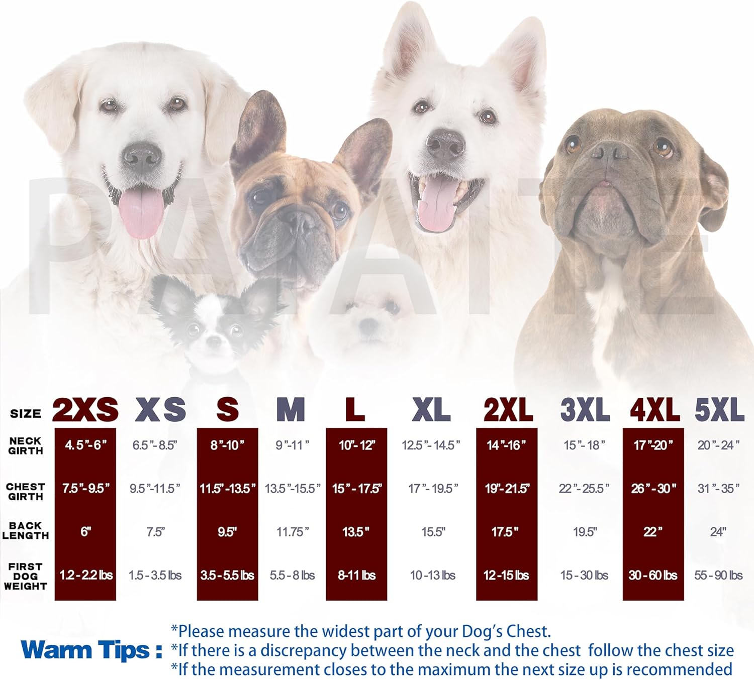 Sizes: The shirt is available in different sizes to fit small to medium-sized dogs. Be sure to measure your dog's chest and neck girth before purchasing to ensure the best fit. The size chart can help guide you in choosing the right size for your pup.