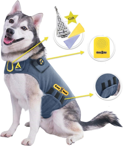 CozyVest® Dog Anxiety Vest 3-in-1 Music & Aromatherapy Shirt, Relaxing Sound & Essential Oils Jacket, Fireworks Thunder Separation & Thunderstorm Canine Stress Relief Coat (Gray, Large [41-64 Lbs])