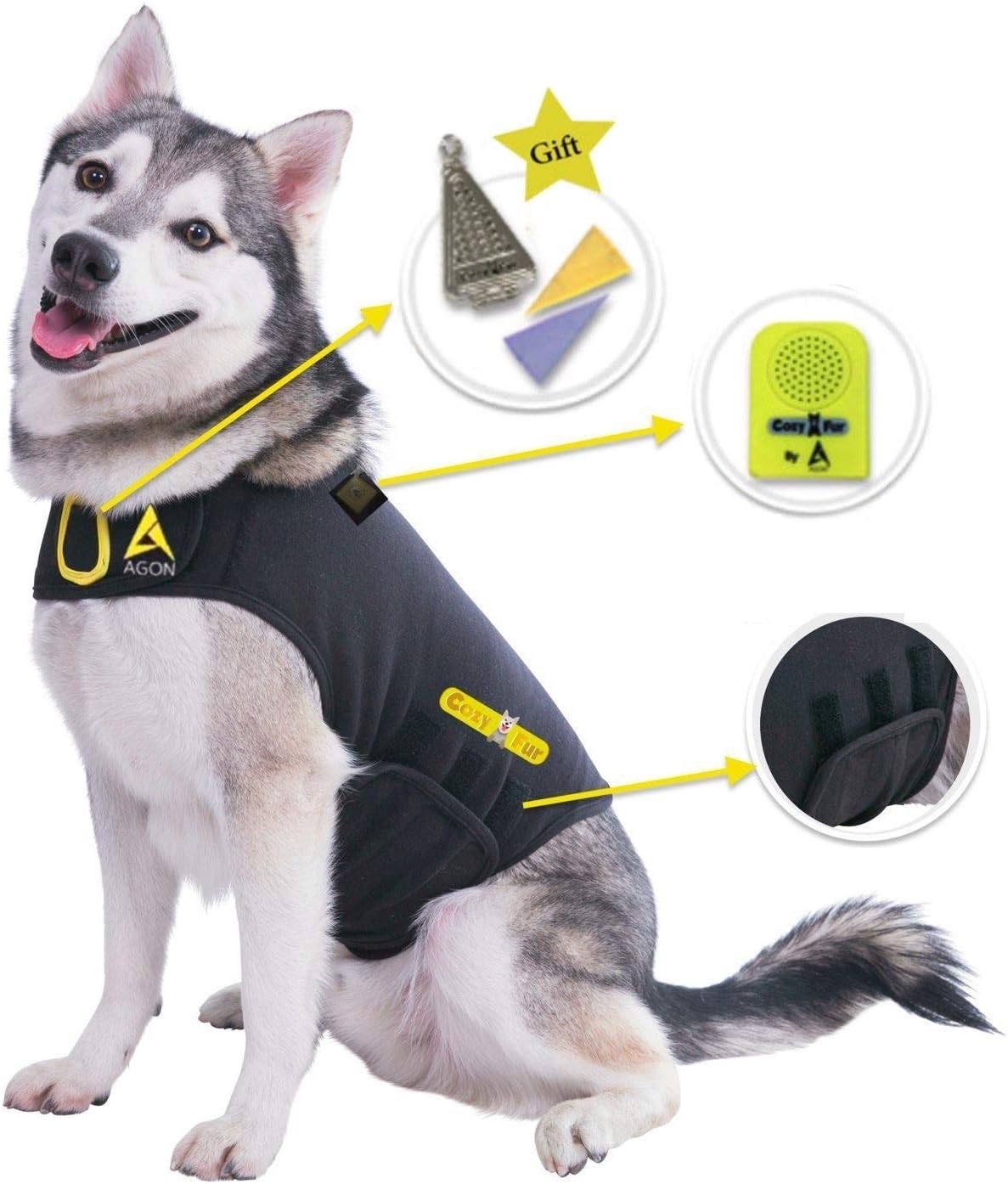• DRUG-FREE CALMING Solution for Every Situation: Whether it's Fireworks, Thunderstorms, Separation Anxiety, Thunder, Travel or vet visits, CozyVest has your dog covered. Say goodbye to medication – our dog anxiety shirt offers drug-free stress relief for your furry companion, making it ideal for rescue dogs too.