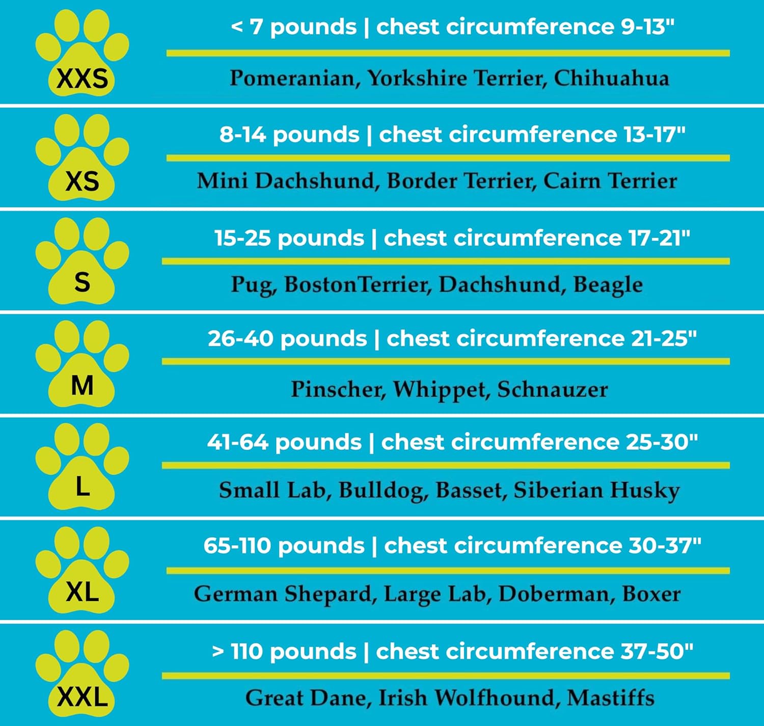 Size Chart by Weight and Chest Circumference Playing relaxing music Pendent with 2 crystal scents Compression with 3 straps - Hug feeling