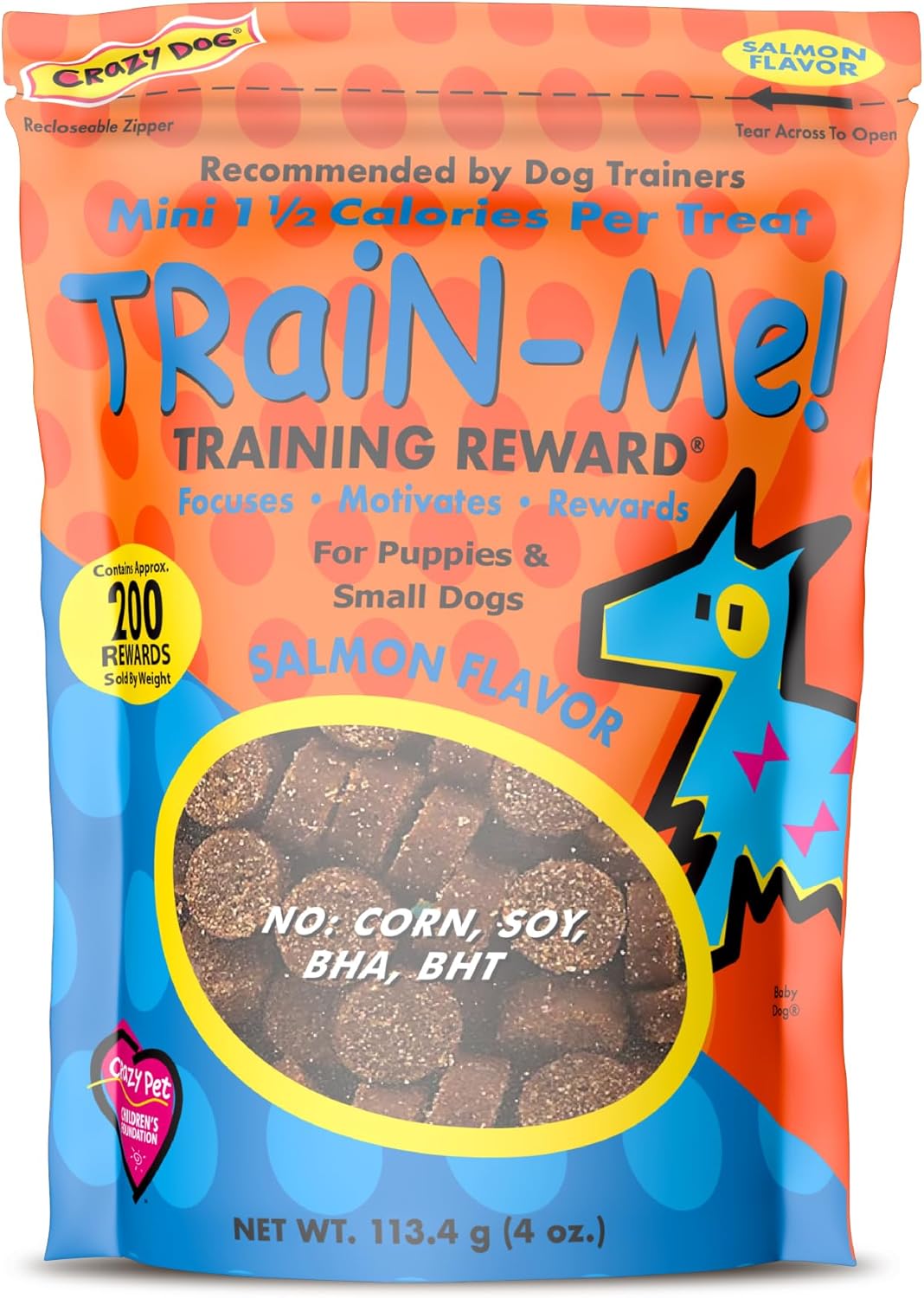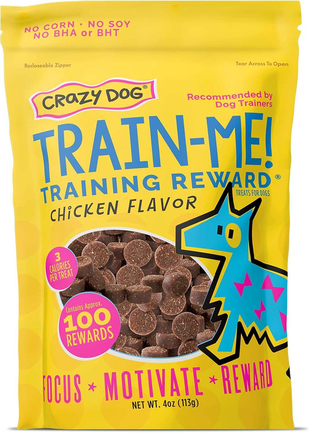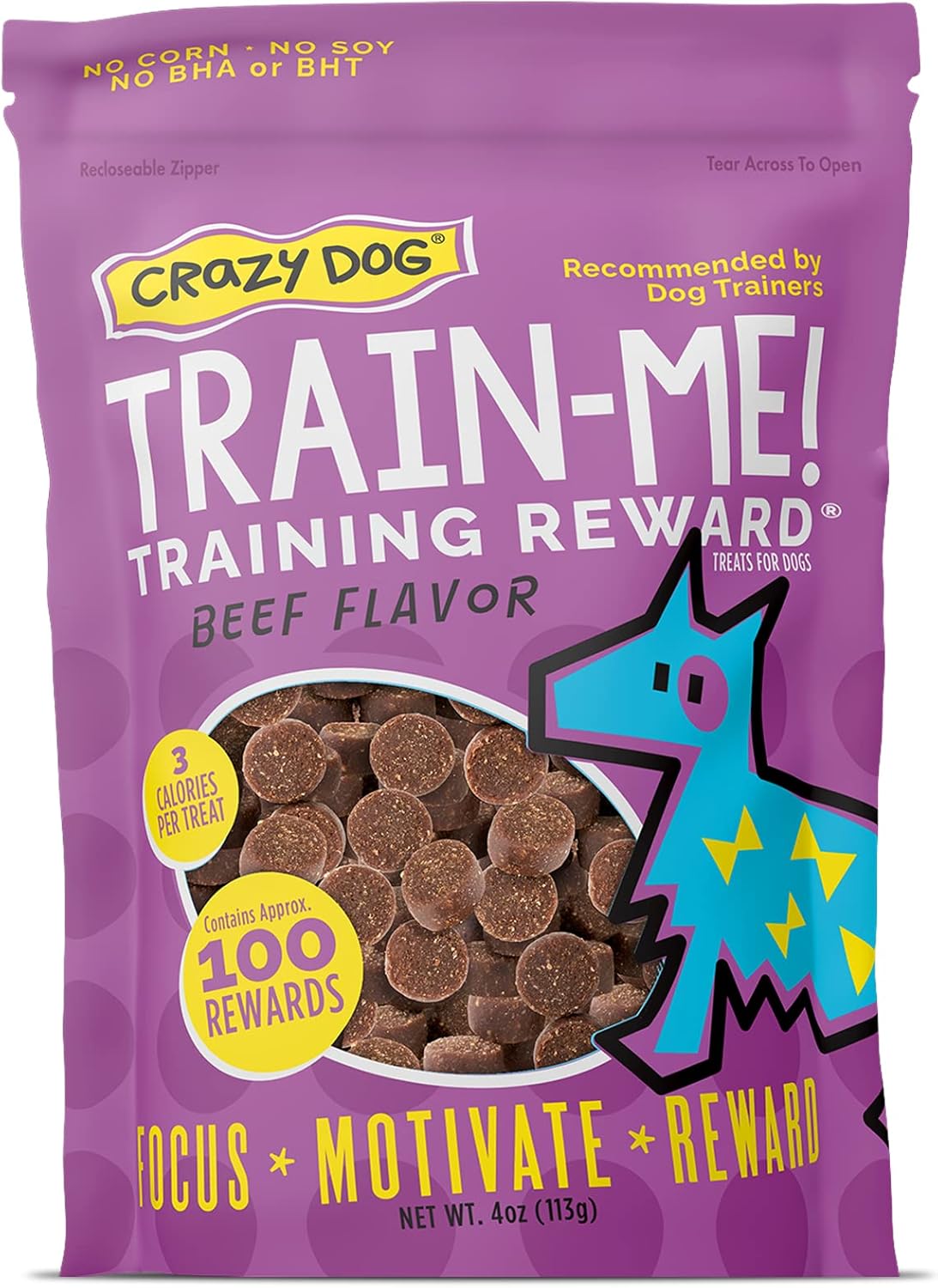 Every dog treat is not necessarily a successful training reward! The Crazy Dog Train-Me! Training Rewards have been tested and recommended by thousands of professional dog trainers because they have proven to attract, focus, motivate and reward dogs for learning a task. That helps shorten the learning curve and make training lessons more successul. Pork Liver is the first ingredient in all our treats. To add variety to your dog's training sessions, bacon, beef, chicken or salmon are added to the pork liver.