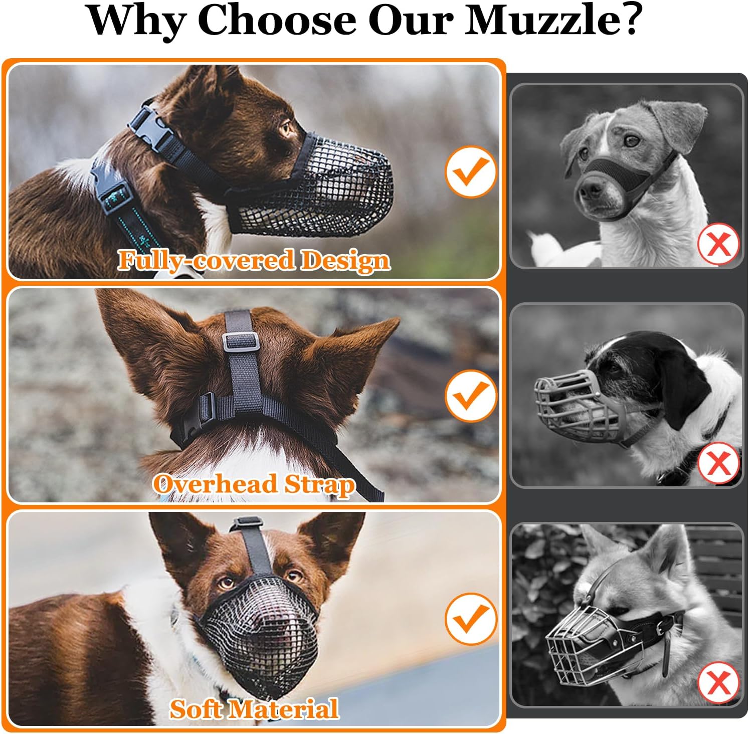 - Keep in Place-The adjustable overhead strap can make sure this anti-slipped muzzle remains in the proper place. In addition, you only need to adjust the neck strap to better fit your dog without worrying about this dog mussel falling off.