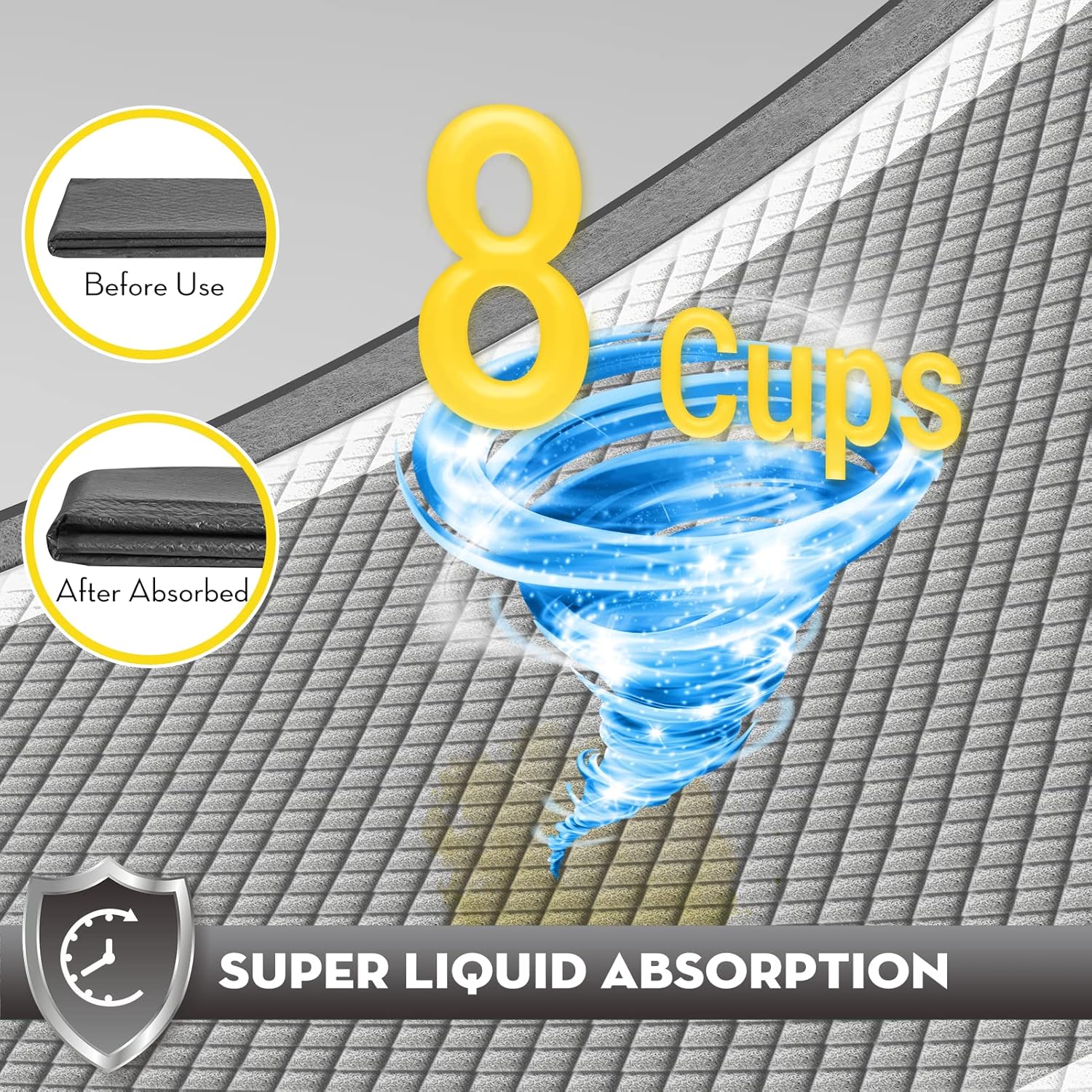 - Innovative 6-Layer Super-Absorbent Design: Six layers including a non-woven top layer for rapid absorption; diamond quilted pattern directs liquid flow; activated carbon layer eliminates odors; super-absorbent polymer core holds 4 to 12 cups of liquid; waterproof PE backing prevents leaks and floor damage