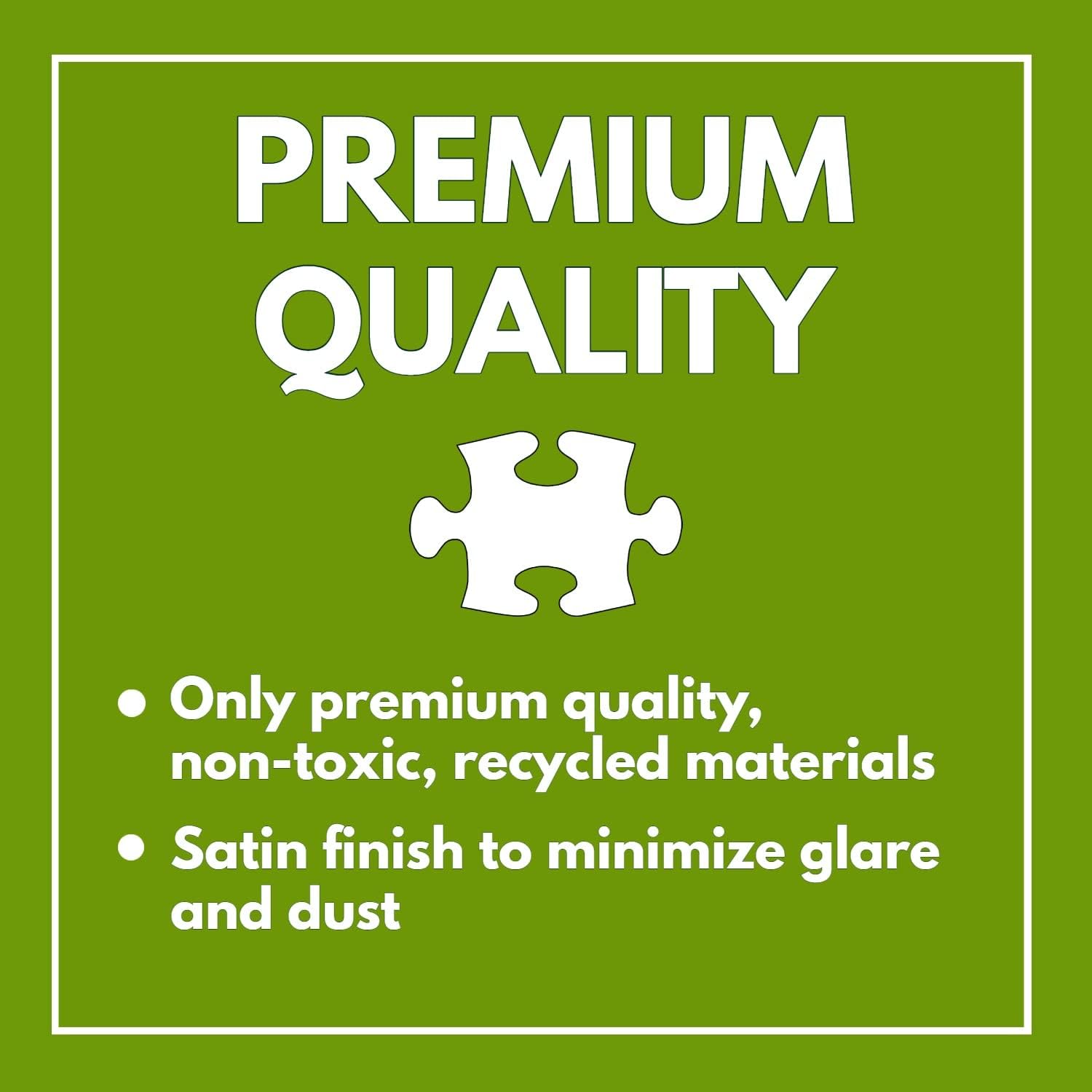 - We print using top-tier offset techniques on eco-friendly, recycled materials to ensure dazzling hues and a soft, glare-reducing finish. The robust 8"x 8"x 2.5"box, with its sleek satin finish, not only protects your puzzle but stands as a chic gift for any occasion.