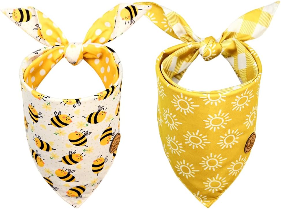 - REVERSIBLE DESIGN: Each dog bandana has a two-sided design, one side with hand painted Spring-theme patterns, and the other side with plaid/stripes/polka dots. So with 2PCS CROWNED BEAUTY dog bandanas, your pups will have 4 fresh new looks.