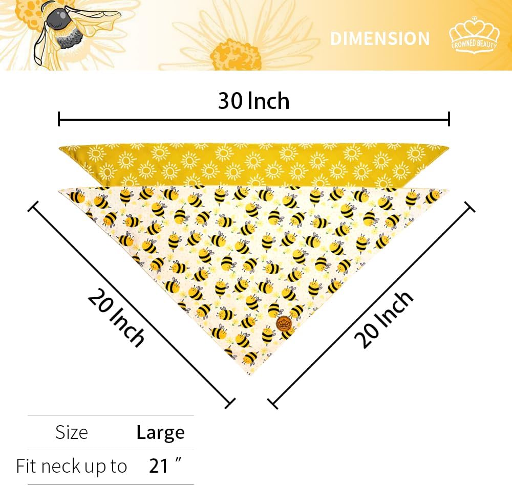 - SIZE: Package includes 2PCS Large (20X20X30") Spring Dog Bandanas. Large size fits neck up to 21", great size for Medium, Large and Extra Large pups. From French bulldog to German Shepherd. They are triangle shape dog scarves, pretty adjustable, as you can tie them where you want them. Our Spring Dog bandanas are hand sewn and measured, please allow +/- 1cm tolerance.
