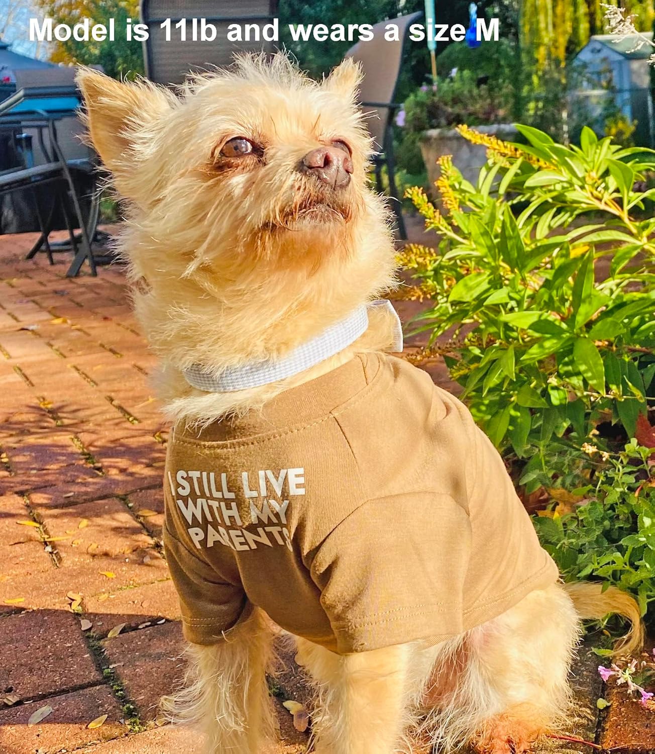 HipGirl dog apparel & accessories. The cute dog shirts are made of soft and breathable fabric. 100% polyester. The dog onesie runs small according to customer message. Please measure the chest girth and back length of your pet, and refer to the size chart before ordering. Funny shirt for dog-I Still Live with My Parents/Cute but Psycho dog shirt. Dog clothes for small dogs boy and girl. Tshirts for puppies. Easy on easy off and easy to clean. Perfect for parties and everyday wear. A good choice as dog costumes and gifts. Machine washable with similar color in cold water and lay flat to dry.