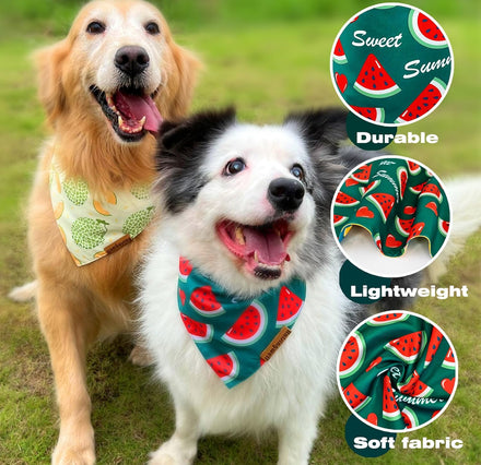 - 【3D Summer-Themed】: Featuring vibrant summer designs, these bandanas are perfect for adding a touch of style to your dog's ensemble. They not only look great but also provide a cooling effect, keeping your pet comfortable in hot weather.