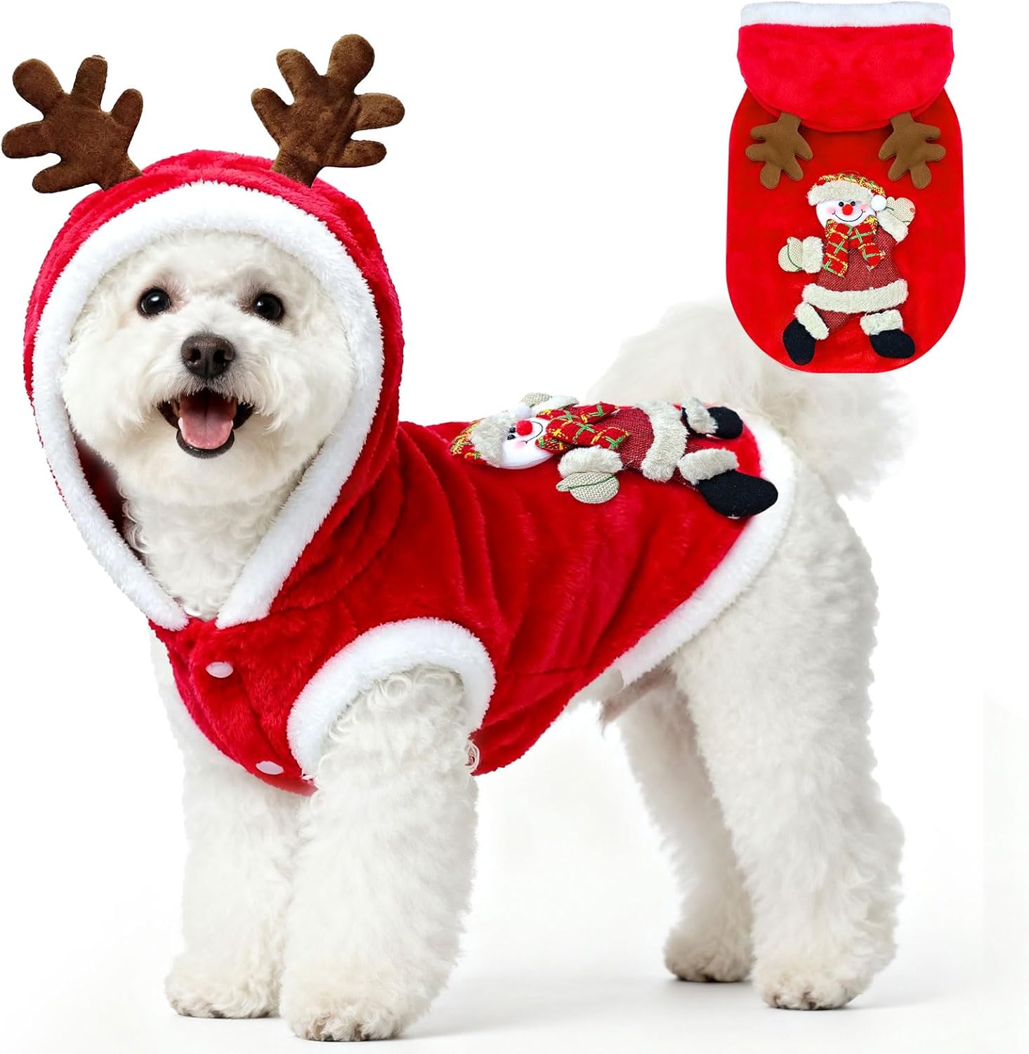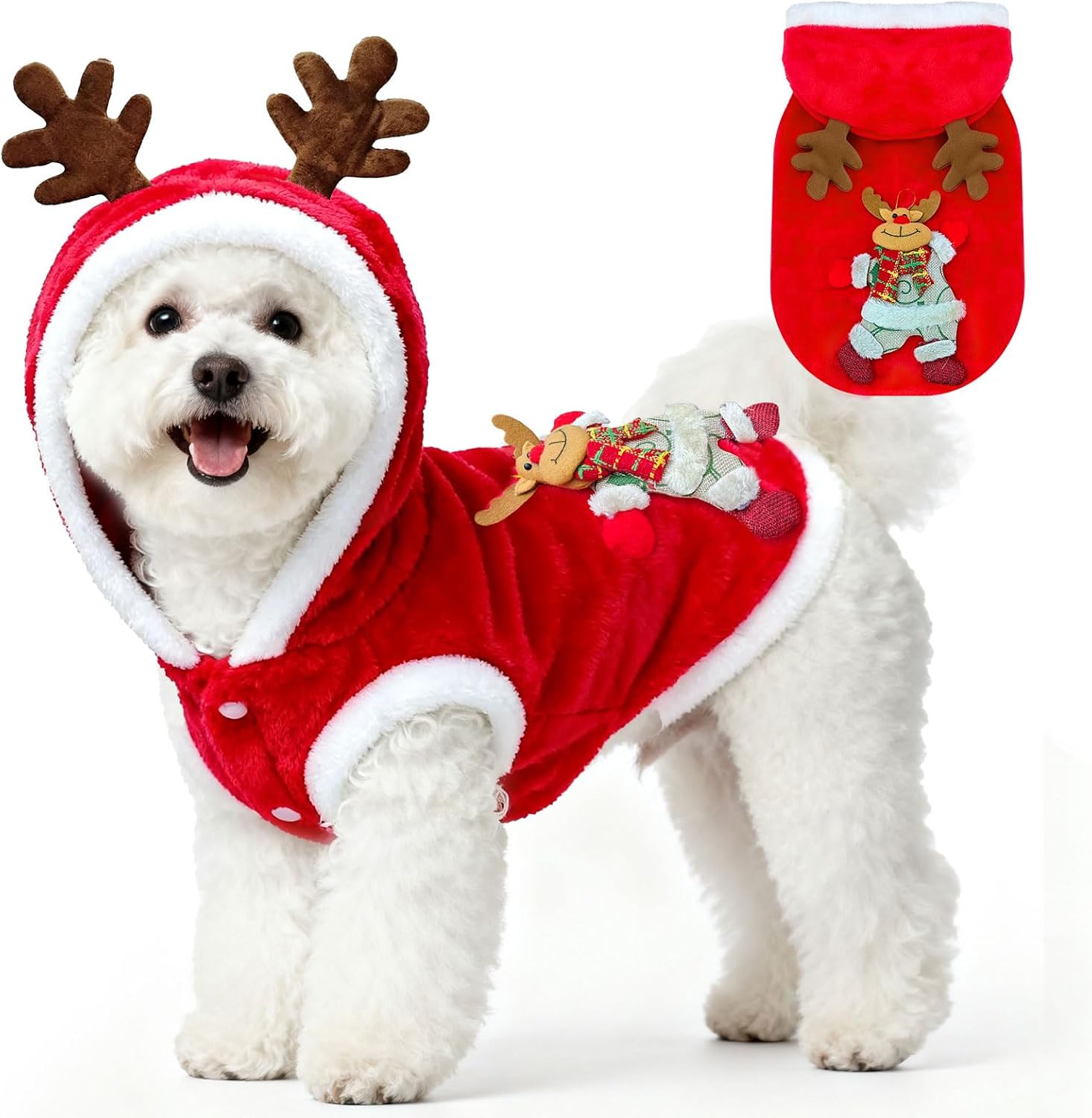 • Funny Puppy Christmas Outfit:It's lightweight so it won't feel heavy or annoying. You can choose the style based on your dog's mood: adorable reindeer look that's perfect for photos, or simply fold it down for a classic Christmas sweater vibe if your pup prefers to keep it simple. It's all about giving you and your pet choices for maximum comfort and cuteness