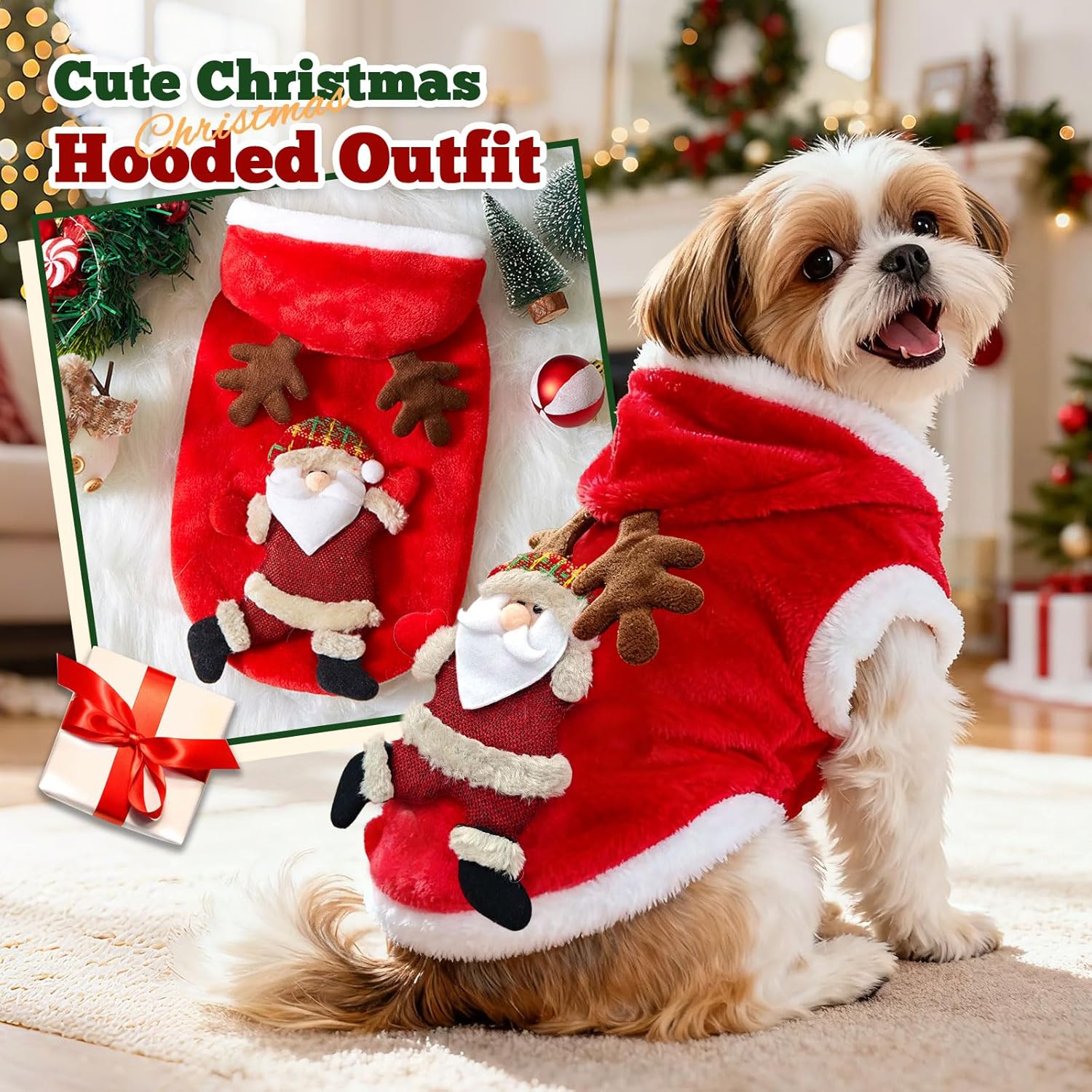 Cute Small Dog Christmas Hoodie Costume Soft Xmas Boy Girl Dog Clothes Funny Puppy Christmas Outfit Winter Warm Pet Cats Holiday Clothes(Red Santa Claus,Small)