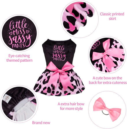 CuteBone Little Miss Sassy Pants Dog Leopard Print Dress Velvet for Small Dogs Girl Puppy Dresses Pink Dog Clothes CVA15M-D