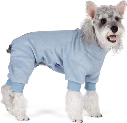 Warm Clothing for Dogs: High collar dog pajamas with four legs can provide full coverage for dog. Double-sided fleece is breathable, these fabric provide warmth and comfort while allowing for proper air circulation, preventing your dog from overheating.