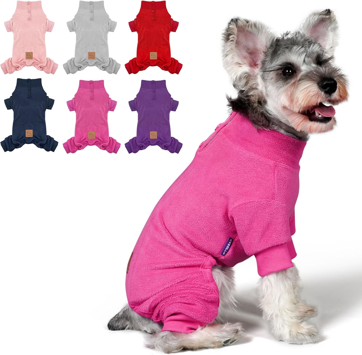 Stretchy Fleece: This pajamas for dogs can stretch easily in all sides to fit your beloved pet's body, allowing them to move freely while wearing it without restricting their shoulders, keeping them cozy while sleeping or walking.