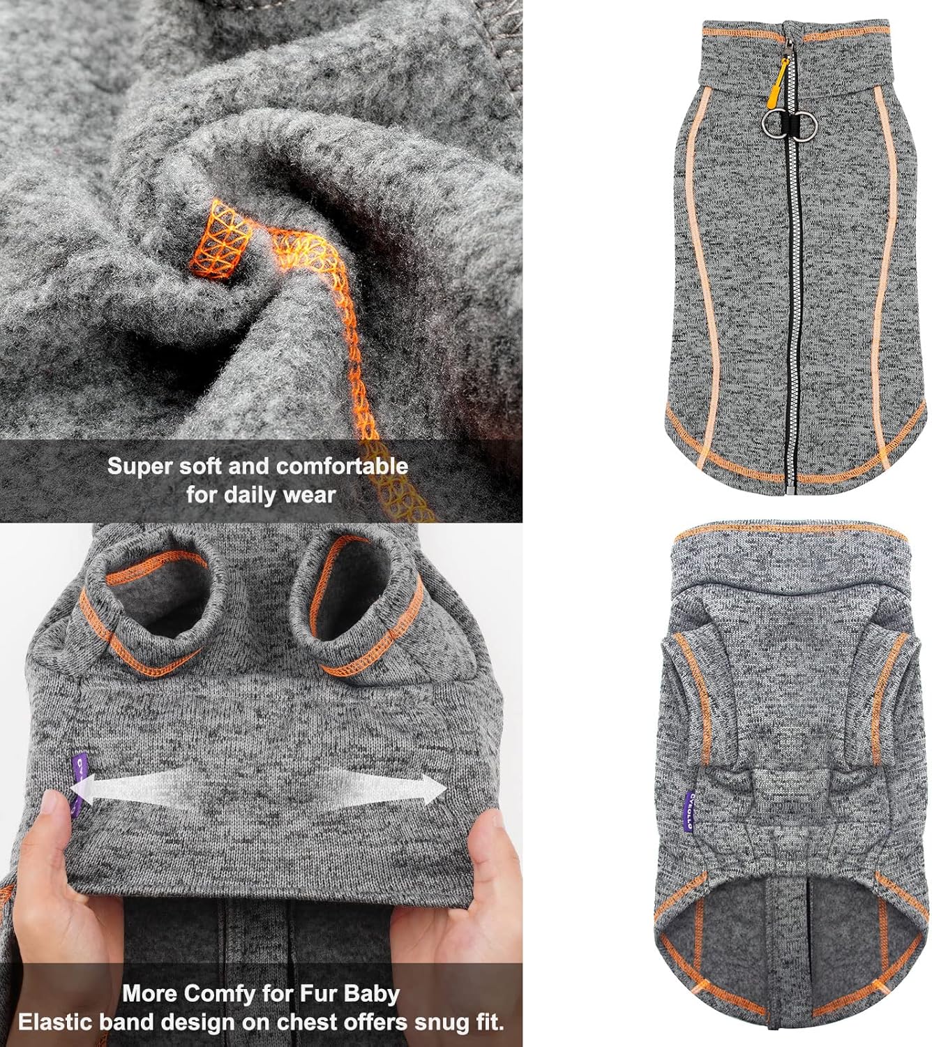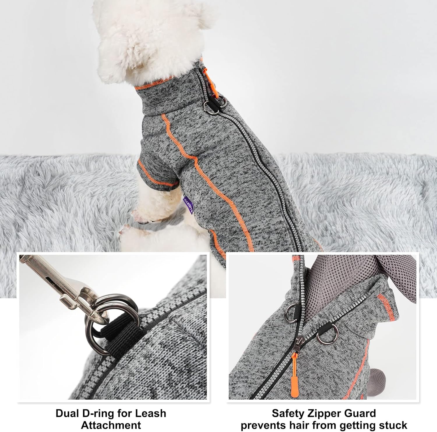 Zipper up Dog Jacket. cyeollo dog fleece coat is a zipper closure dog sweater that you can quickly and easily on and off. The zipper guard on the back prevents hair from getting stuck and the zipper puller makes it easy to handle. Just wear the fashionable fleece dog coat and zip up with ease.
