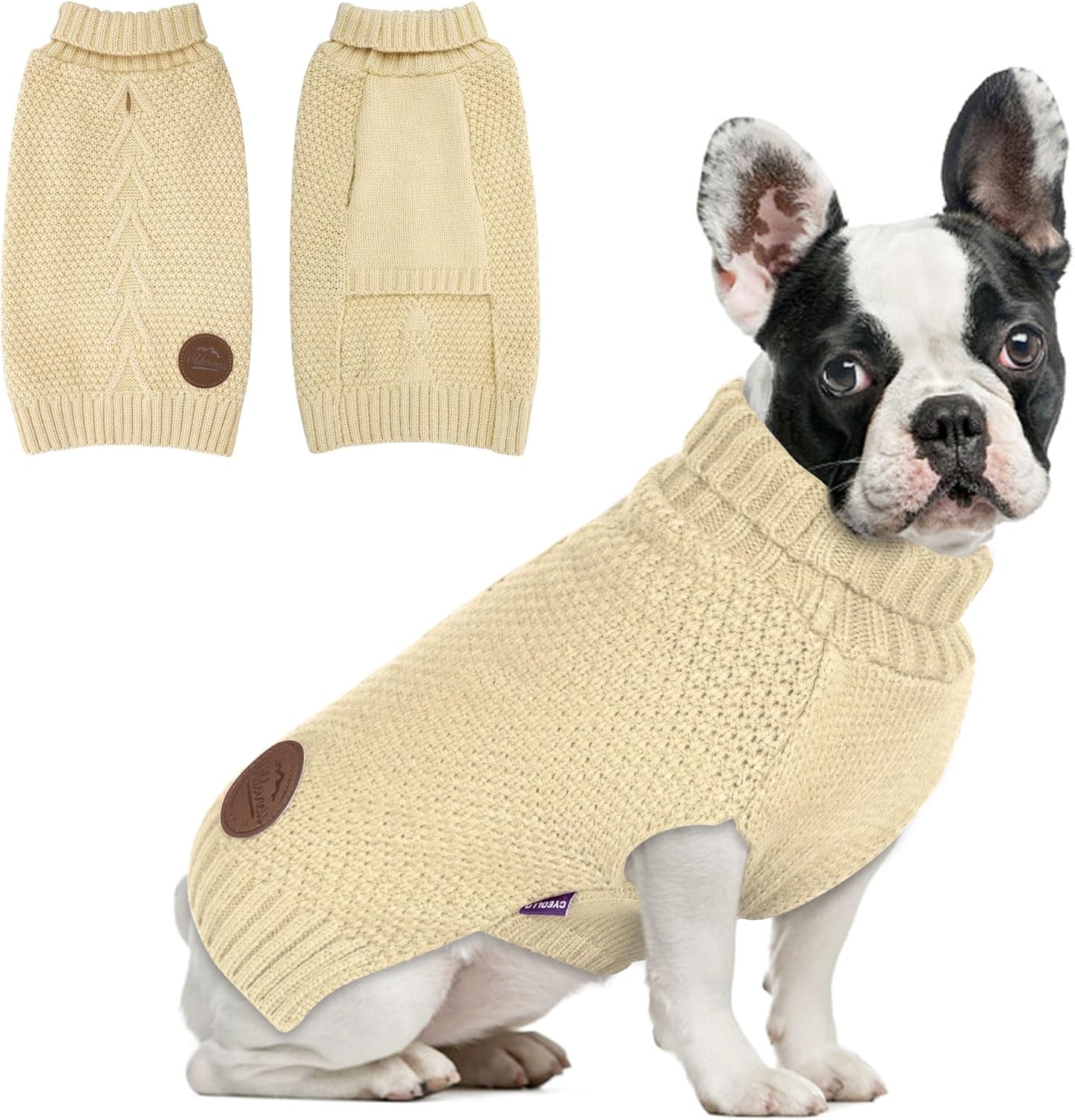 cyeollo Dog Sweaters for Small Dogs Turtleneck Knitted Sweaters with Leash Hole Fall Small Dog Clothes Winter Pets Apparel